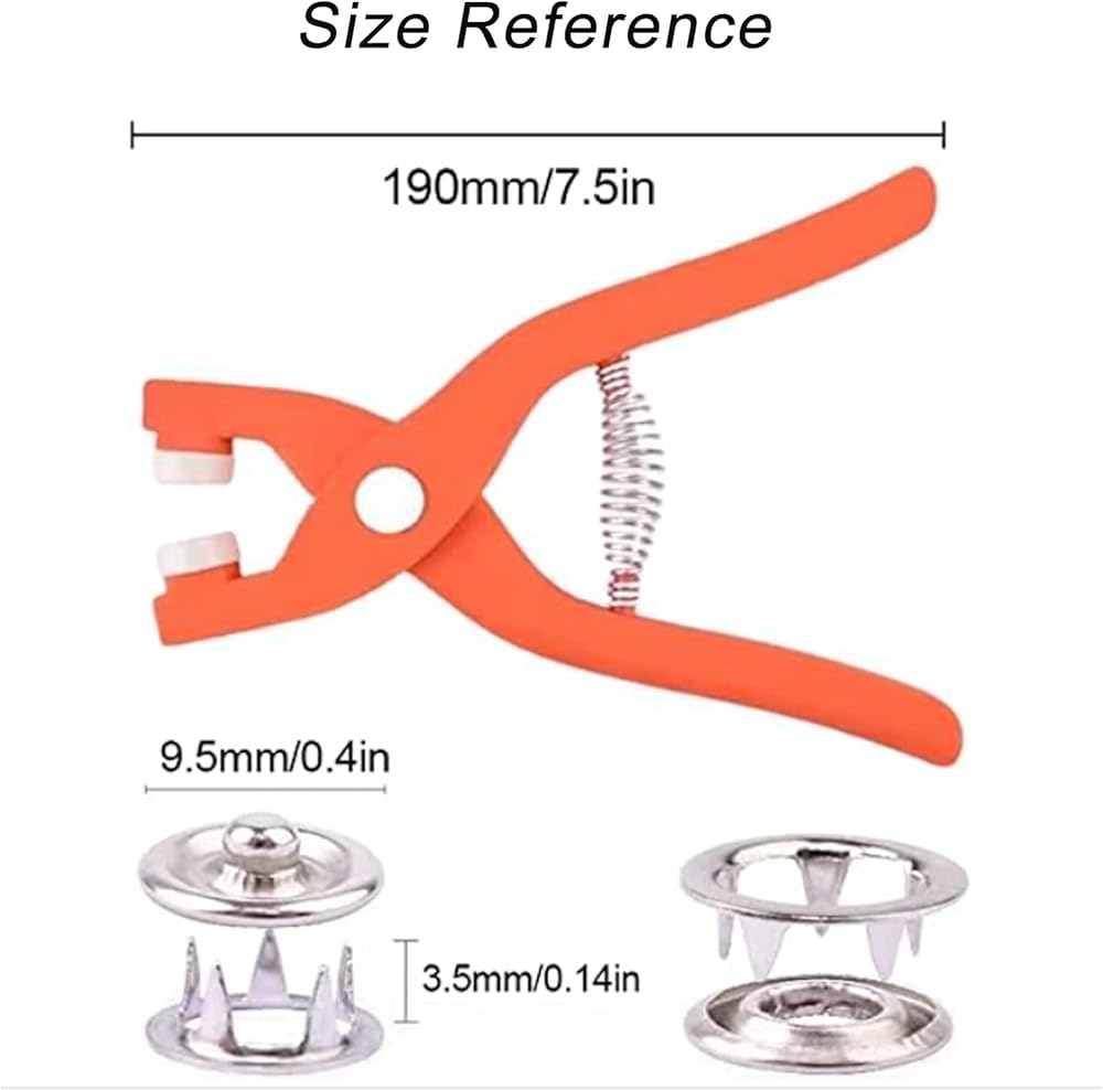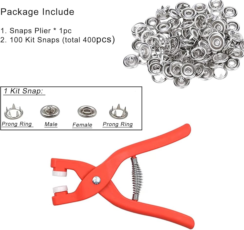 طقم زرادية ازرار كبس مقاس 9.5 ملم من 100 قطعة (400 قطعة) مع كماشة تثبيت واداة ضغط للخياطة والحرف اليدوية