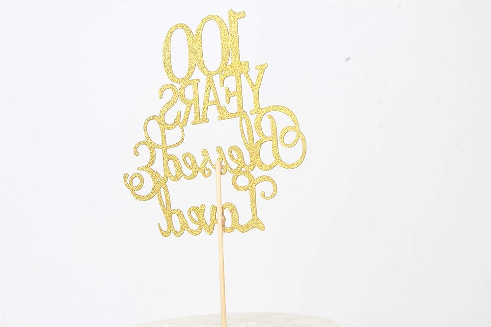 غلاف ذهبي لامع ل100 عام للكيك من أعلى الكعكة المباركة والحبيبة، عيد ميلاد 100، مستلزمات تزيين حفلات الزواج في الأعياد السنوية...
