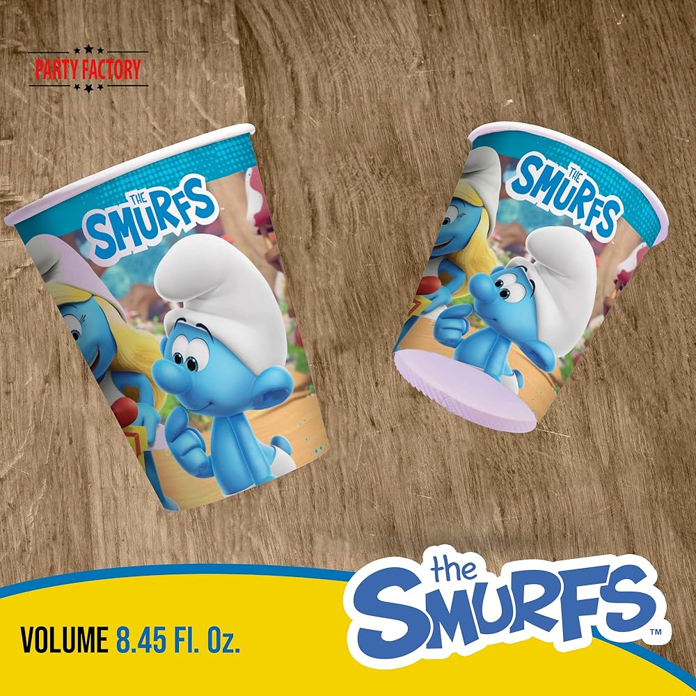 ديكو هايلايت : تظهر الأكواب الورقية السنافر الزرقاء الصغيرة من سلسلة الرسوم المتحركة التي تحمل نفس الاسم. تسليط الضوء المطلق لجميع محبي الشخصيات الكبار والصغار من سمورفيل.