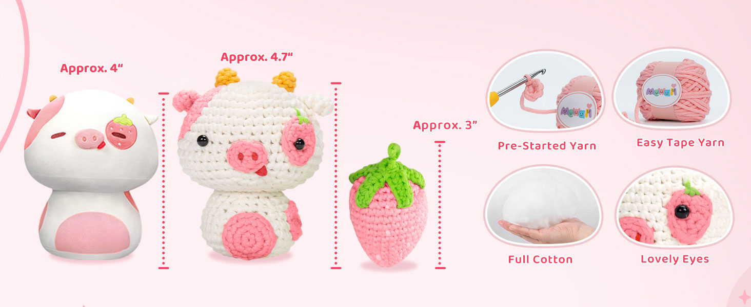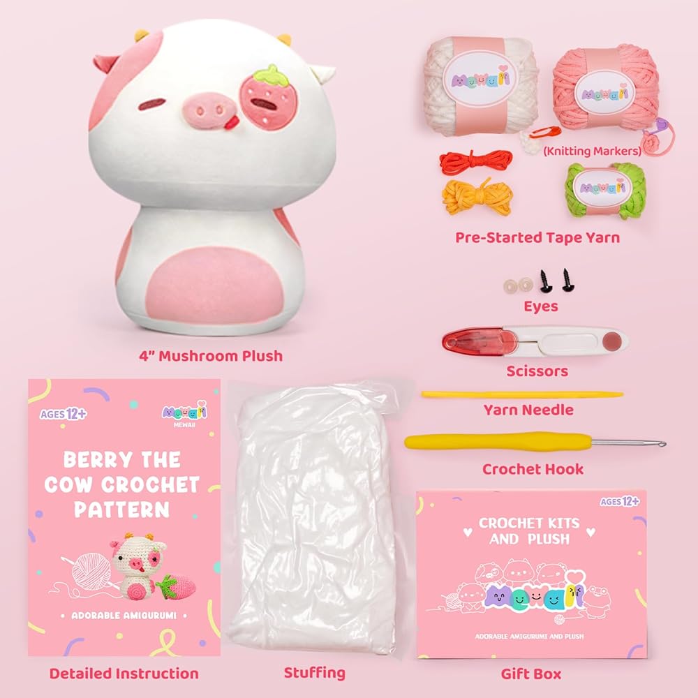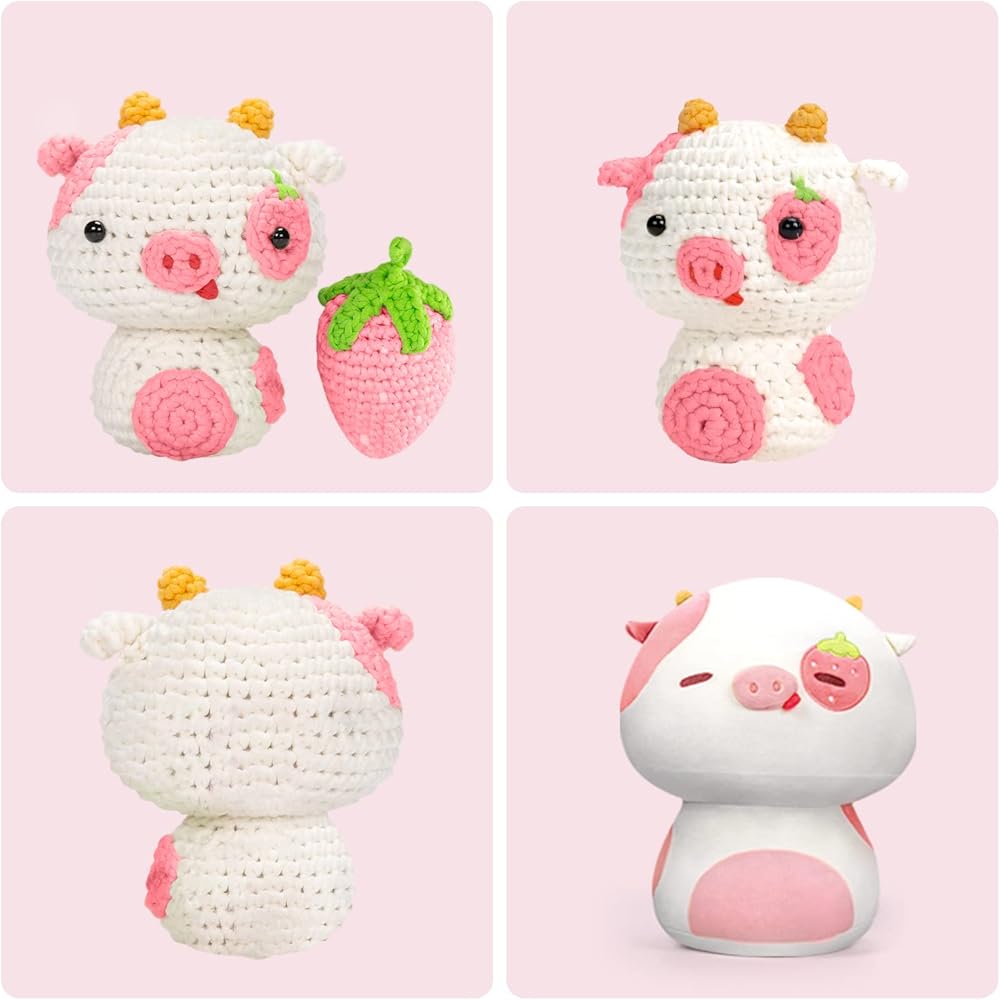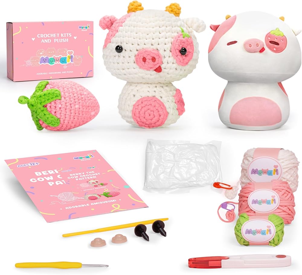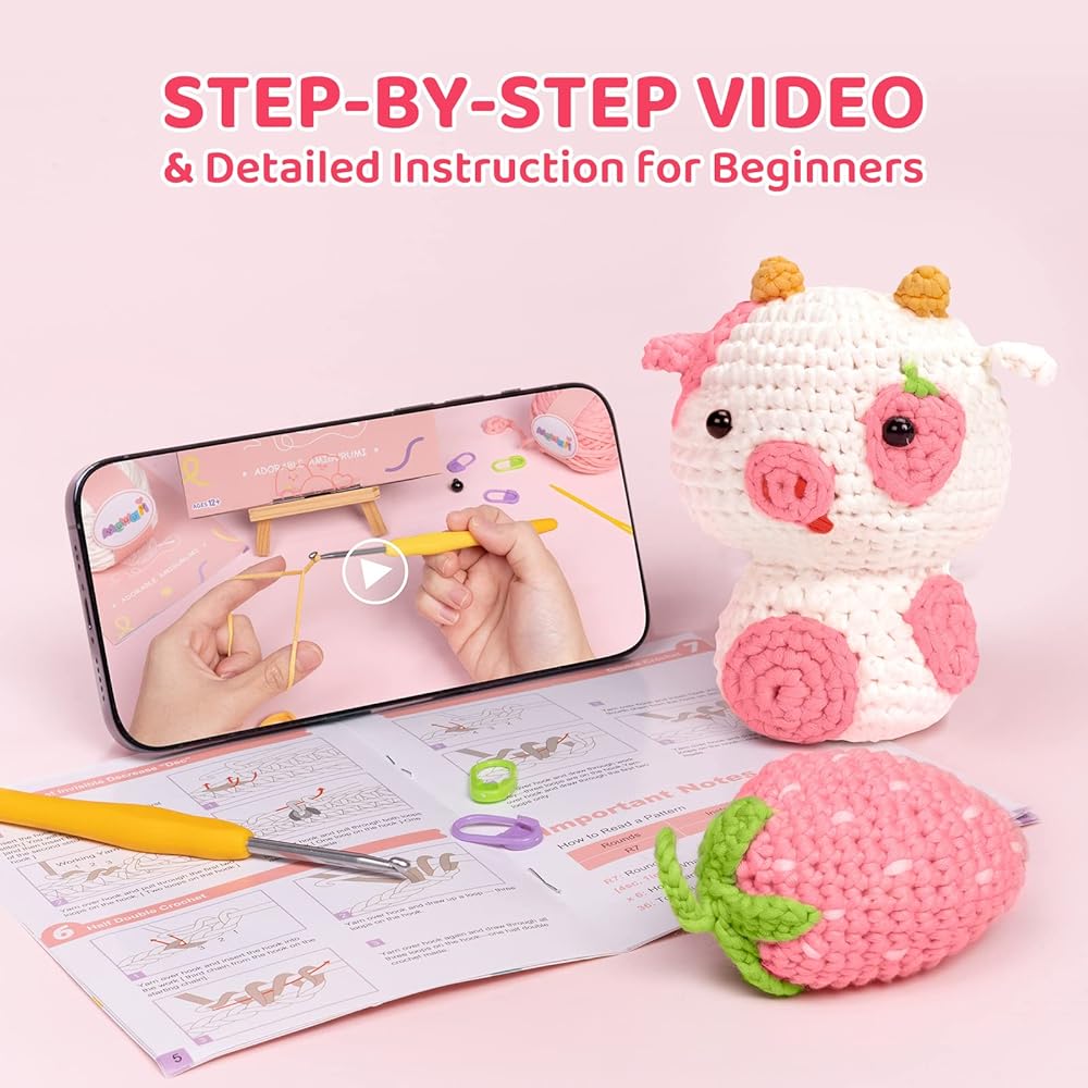 مجموعة كروشيه للمبتدئين من ميواي، مجموعة كروشيه كاملة ذاتية الصنع على شكل حيوانات مع 40% + شريط غزل بدأت مسبقًا، فيديو تعليمي خطوة بخطوة للبالغين والاطفال (بلو بيري كاو) (MEDO000CRO0542L0-A)