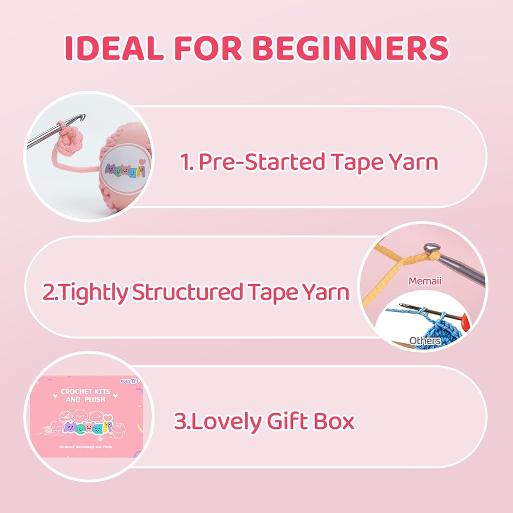 غزل شريط بدأت مسبقًا - بالمقارنة مع الخيوط العادية، توفر مجموعة الكروشيه ميواي للمبتدئين خيوط شريطية محكمة الغلق يسهل التعامل معها. خيوط الغزل التي بدأت مسبقًا تجعل من السهل بدء مشروع الكروشيه الخاص بك. لديك خيار بدء الصف الأول من الغرز، حيث قدمنا ما يكفي من الخيوط لضمان عدم نفادك.