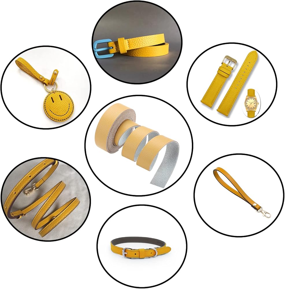 سي دي واي سوار جلد بنمط ليتشي بطول 90 انش وعرض 1 انش، شرائط جلدية مناسبة جدًا لمشاريع الحرف اليدوية، اطواق الحيوانات الاليفة، حبال الجر، الاحزمة، سلاسل المفاتيح، احزمة الساعات الجلدية (اصفر فاتح)