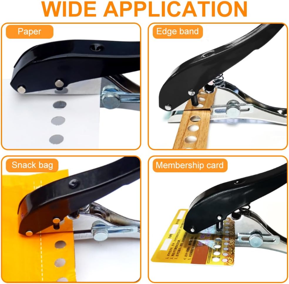 【ثقب متعدد الأغراض وشديد التحمل】هذا الثقب أو ربط الحواف، الورق، الورق المقوى، الصور، رقائق الألومنيوم، ورق البناء، بطاقات العمل، دفاتر القصاصات، التذاكر، ملصقات البضائع، بطاقات البنك البلاستيكية، تغليف المواد الغذائية البلاستيكية، مناسبة للمنزل، والمدرسة، مكتب، استوديو، مكان الحرفية، الخ.