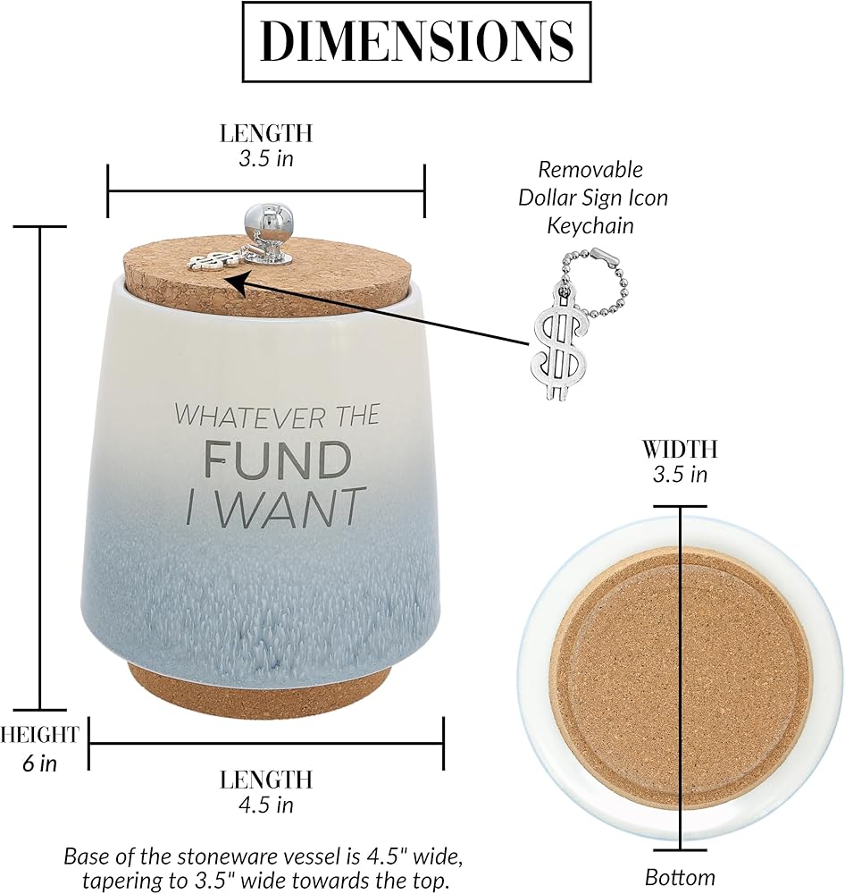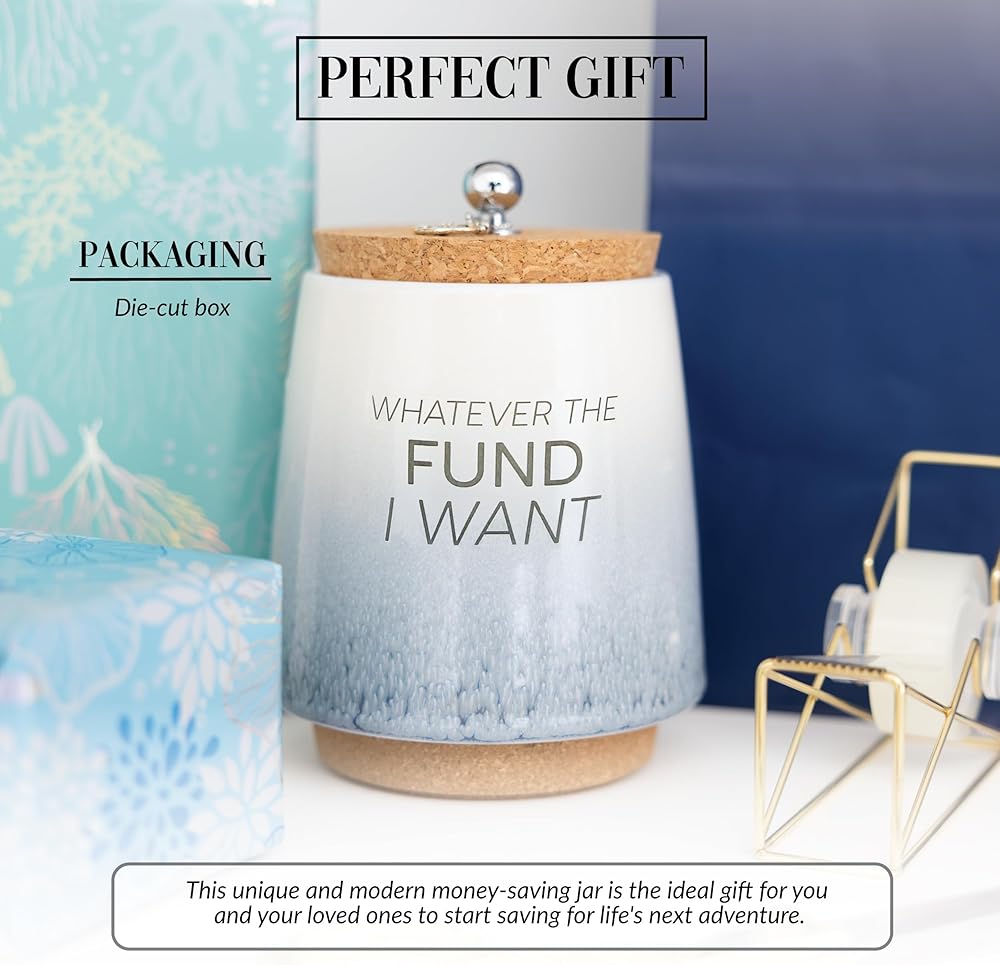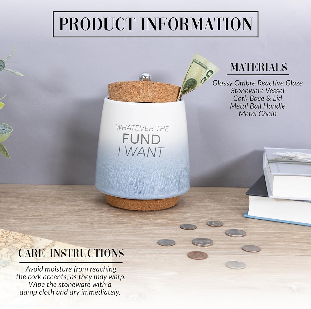 - Pavilion Gift Company Whatever I Want-6.5" Ceramic Savings Bank, Blue, Beige, Brown