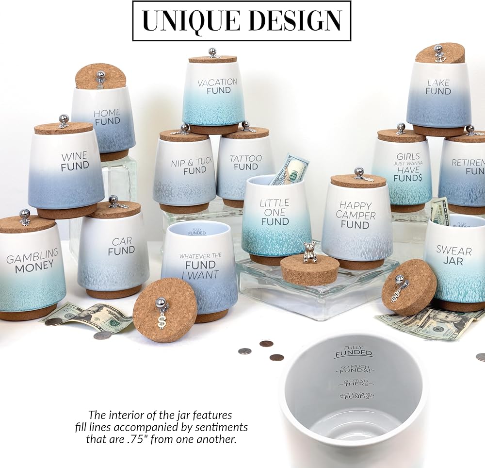 شركة Pavilion Gift Company كل ما أريده - بنك توفير سيراميك مقاس 6.5 بوصة، أزرق، بيج، بني