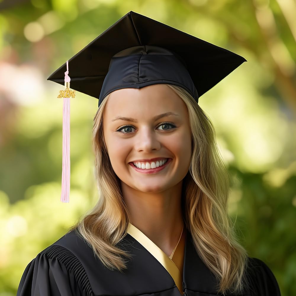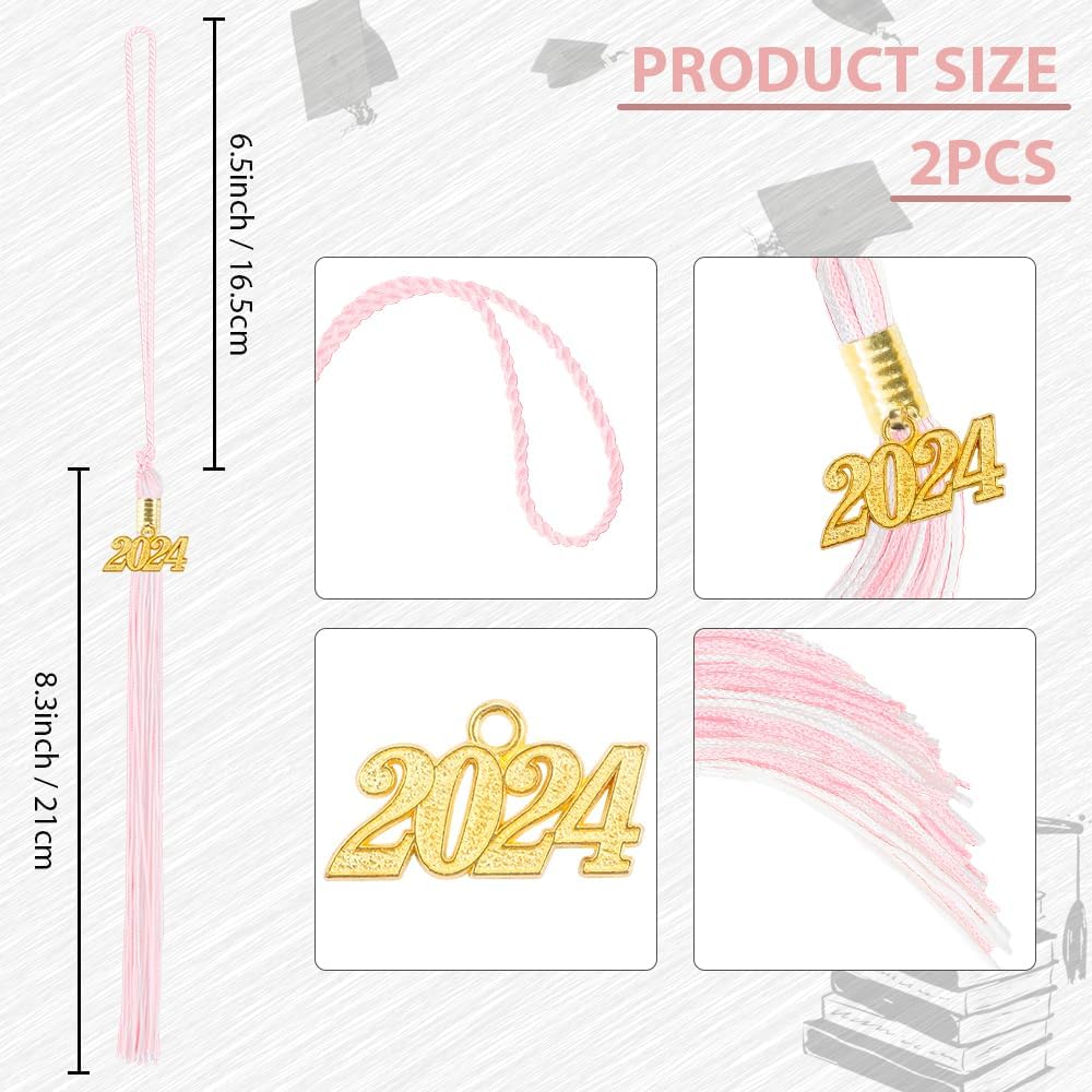 تتضمن العبوة والمواد: قطعتين من شرابات التخرج وحلي ذهبية، كل شرابة تخرج تأتي مع حلية ذهبية اللون مرفقة بتاريخ العام. شرابات التخرج مصنوعة من مادة البوليستر عالية الجودة مع صنعة جيدة. الحليات الذهبية 2024 مصنوعة من المعدن، وهو قوي ولا يبهت ومتين.