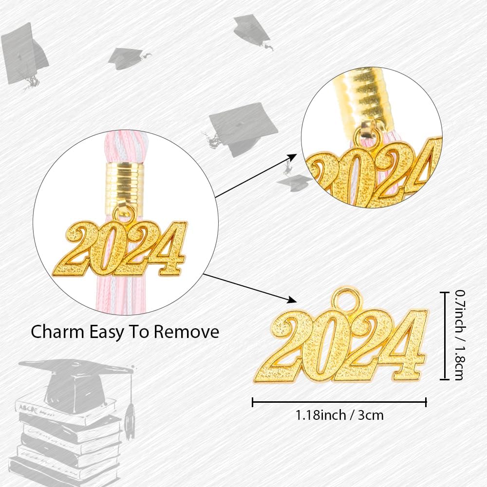 سحر الشرابة للخريجين: سحر عام إسقاط الخاتم الخاص بك هو لون ذهبي. يبلغ طولها حوالي 1-3/8 بوصة وطولها 3/4 بوصة وهي متصلة بالشرابة، ولكن يمكنك إزالتها. تتميز قبعة التخرج بشرابة طويلة مع سحر عام، وهي مثالية لجميع الخريجين المستحقين الذين سيحصلون على دبلومهم هذا العام. السحر قابل للإزالة، لذلك لا يزال بإمكانك استخدام شرابة التخرج خلال السنوات القادمة.