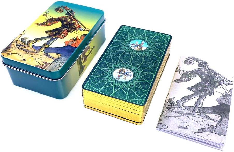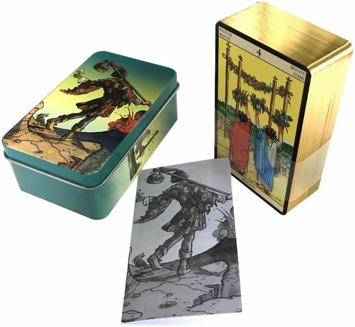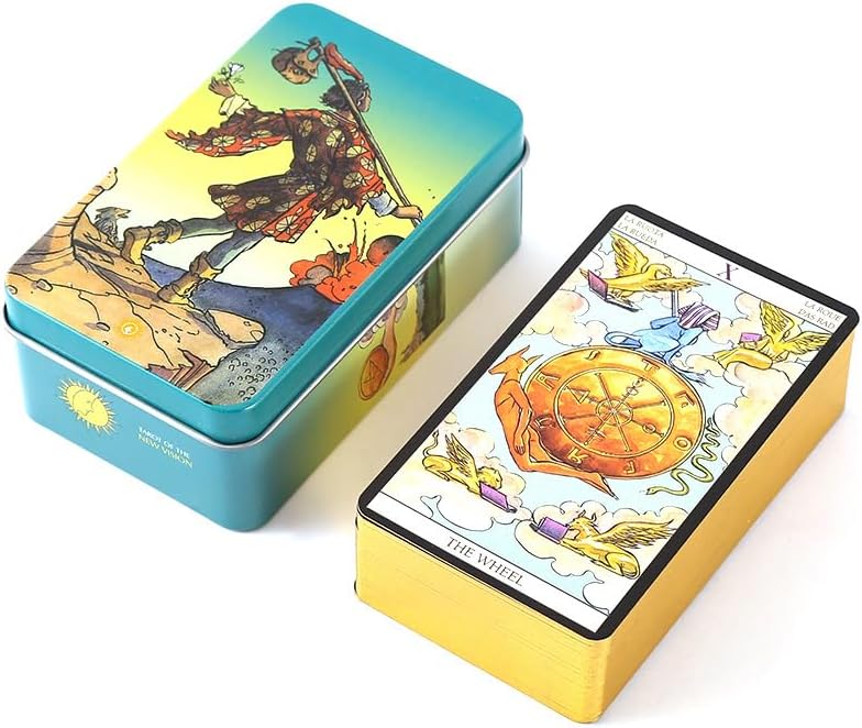 Atesswy Tarot of The New Vision in A Tin - إصدار محدود مذهب - 78 بطاقة مع كتيب للمبتدئين، إصدار الجيب (4.06 بوصة × 2.36 بوصة)