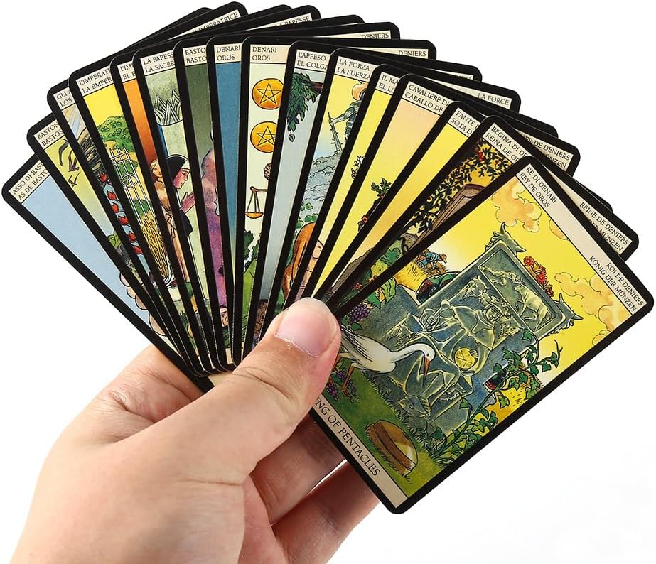• 【مجموعة كاملة مع إرشادات شاملة】داخل العلبة الجميلة، ستكتشف مجموعة كاملة مكونة من 78 بطاقة تارو، يبلغ قياس كل منها 60 × 103 مم. ولكن هذا ليس كل شيء، فقد قمنا أيضًا بتضمين كتيب شامل لمساعدة القراء المبتدئين وذوي الخبرة. يوفر هذا الكتيب رؤى وتفسيرات وإرشادات قيمة، مما يضمن حصولك على أقصى استفادة من قراءات بطاقة التارو الخاصة بك.