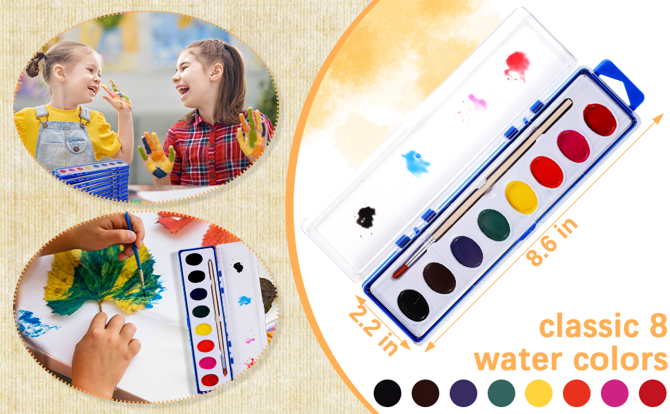 Colorful & Easy to Use: Our watercolor paint sets comes in 8 colors that are easy to mix and apply, with good transparency and high saturation. Easy to clean and re-wet, ensuring worry-free painting sessions.