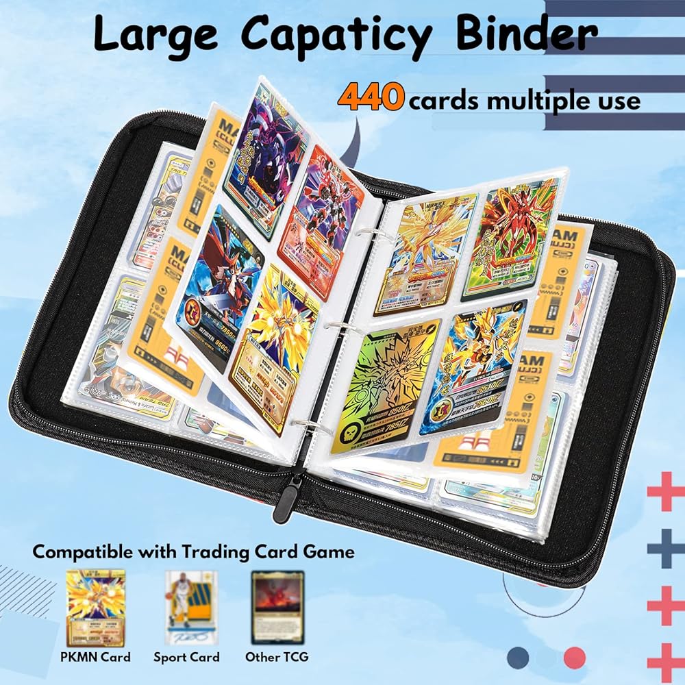 【Huge Capacity】Fits 440 Cards with 55 Removable Sleeves. 3-ring design is convenient for you to add or remove sleeves and meets all your collection needs.