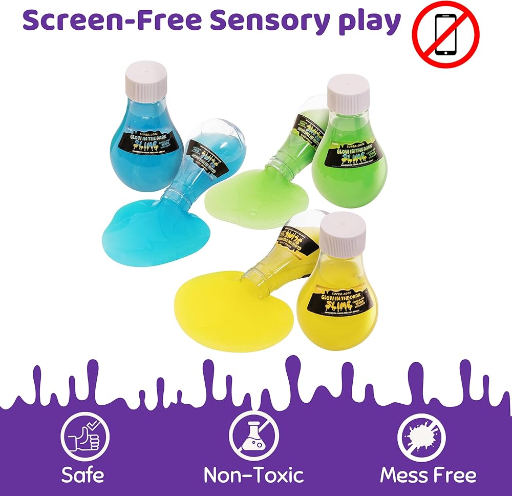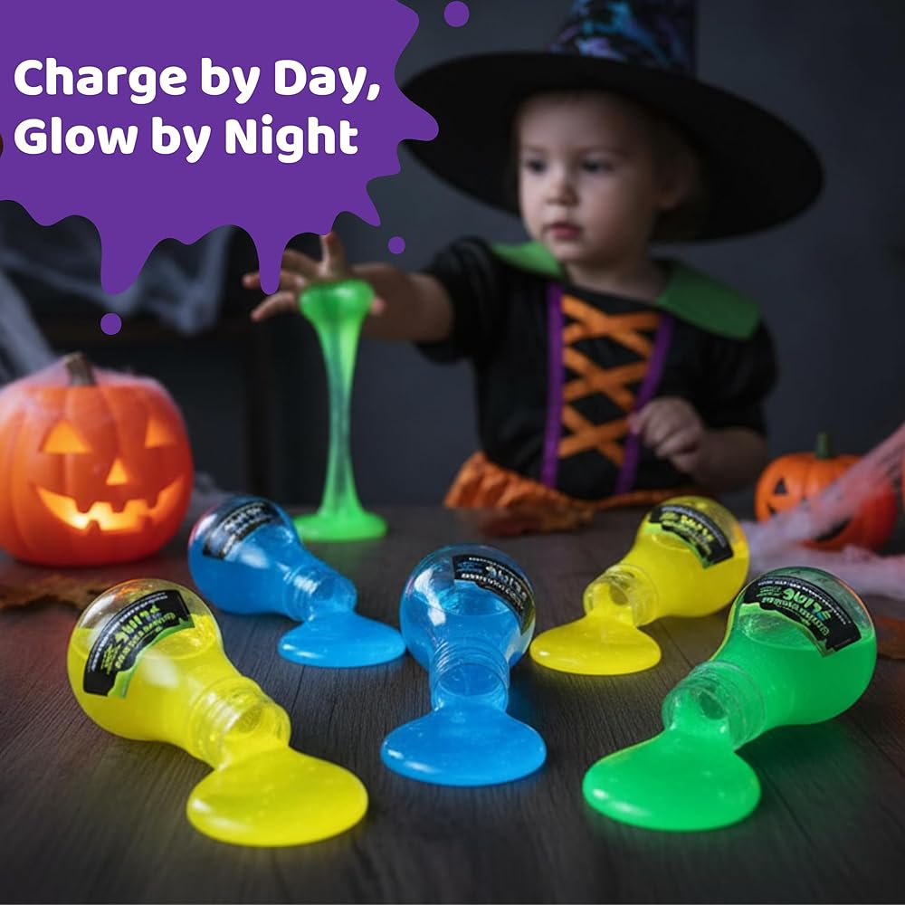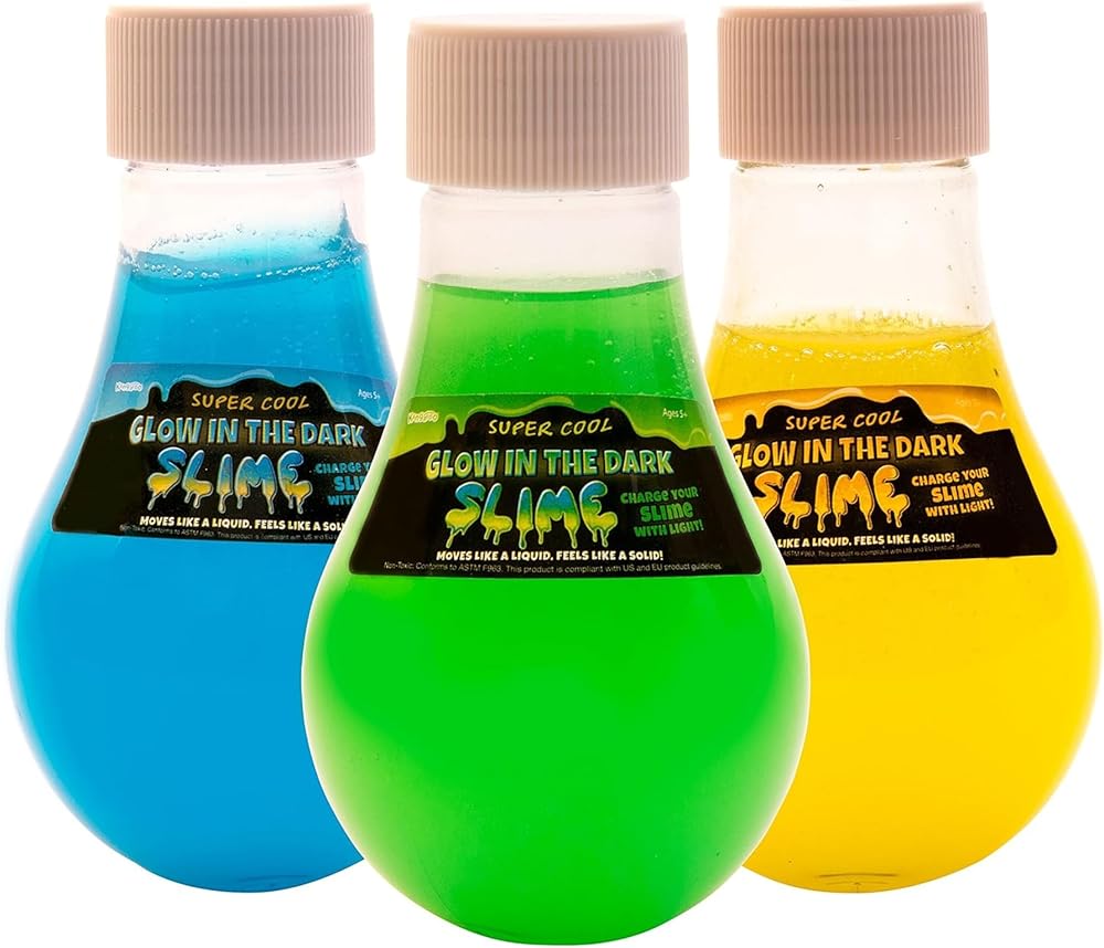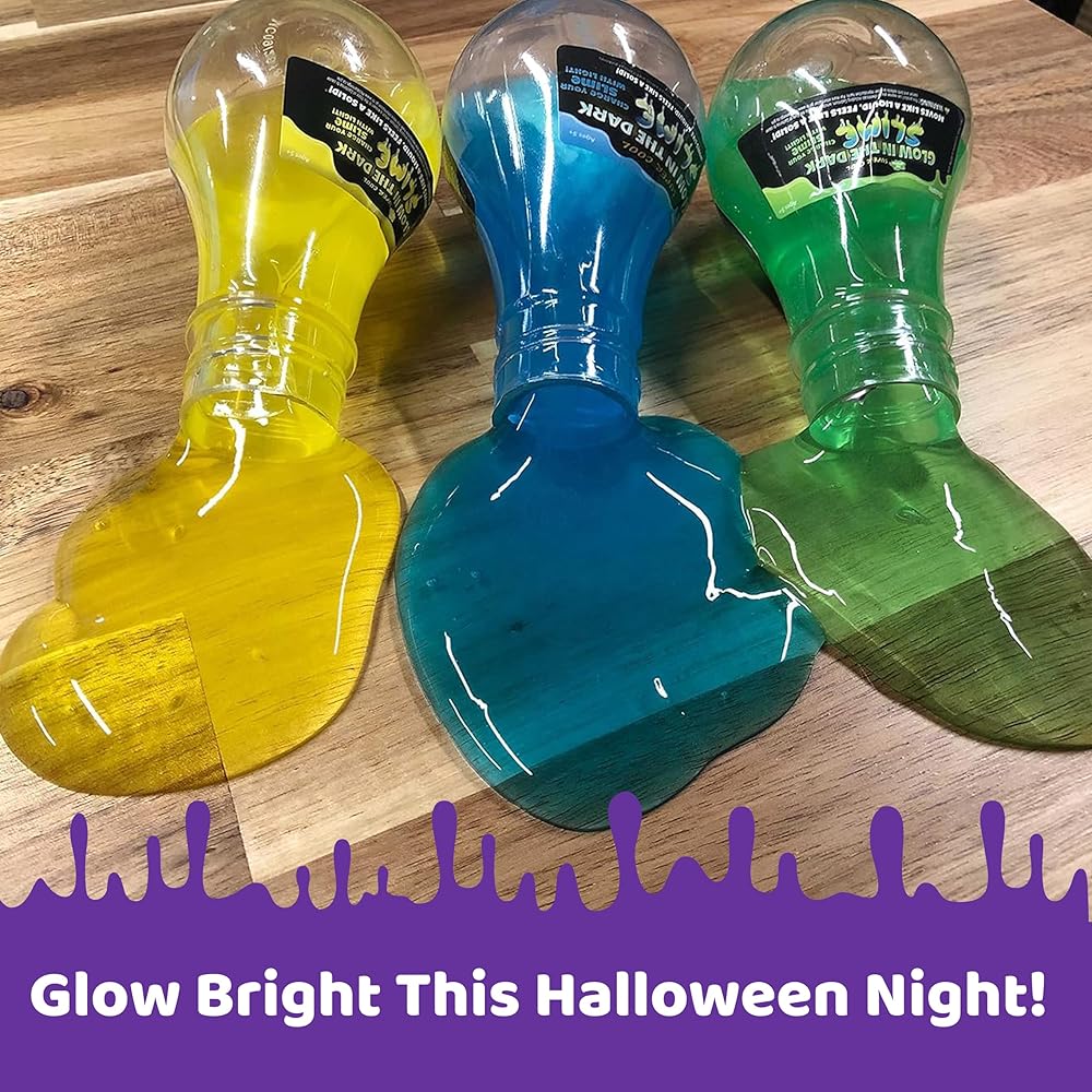 3 عبوات سلايم متوهجة في الظلام - ألوان نيون ساطعة، الأزرق والأصفر والأخضر، زجاجات سلايم متوهجة رائعة لأعياد الميلاد، وحقائب الغنائم، وسلال عيد الفصح، وحشوات الهالوين والجوارب، للأولاد والبنات من سن 5 سنوات فما فوق