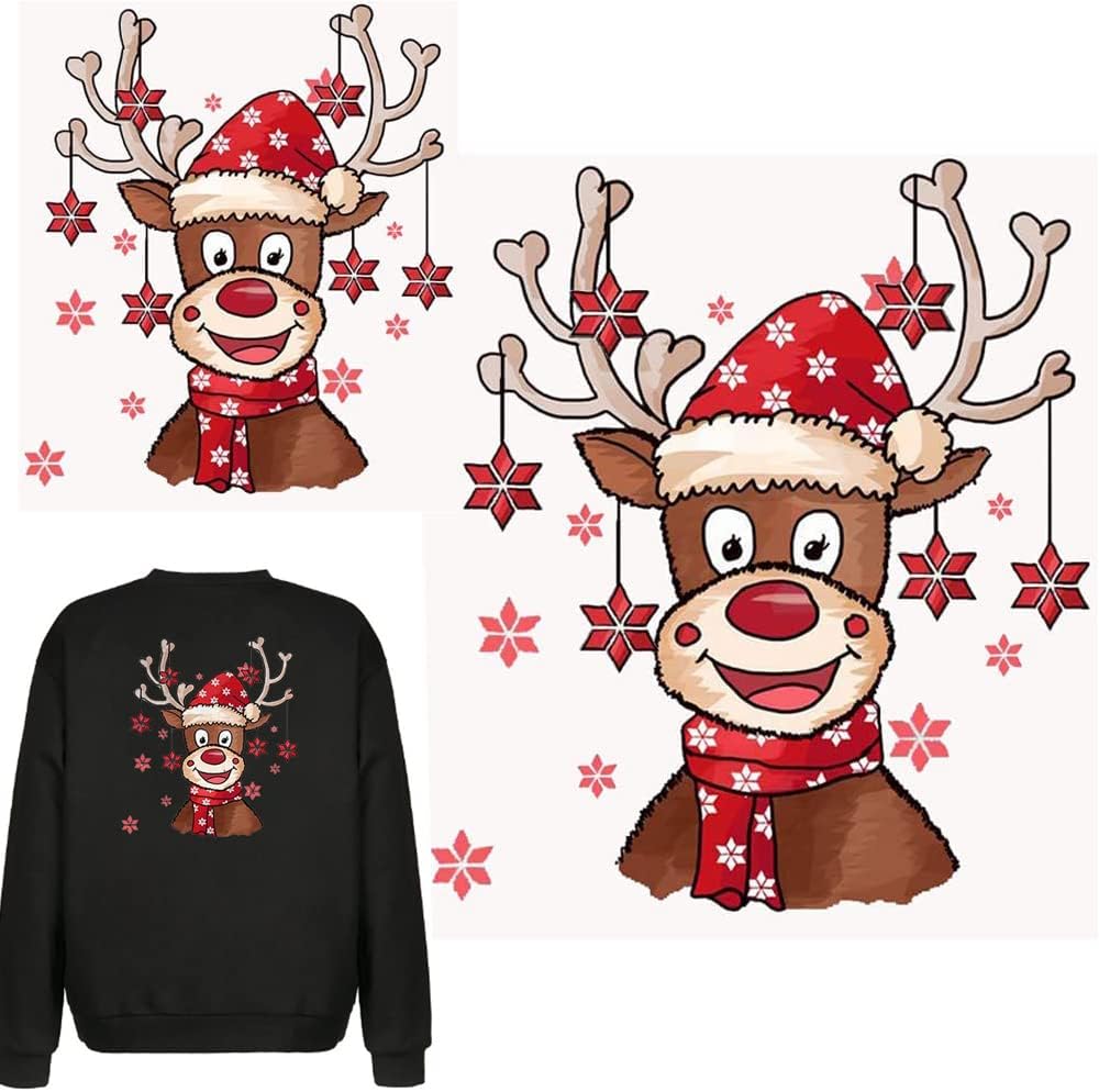 2 ورقة عيد الميلاد رقع الغزلان الحديد على نقل الحرارة يزين الإلكة عيد الميلاد الحيوان الشارات قابل للغسل للسترات البلوز جينز حقيبة الظهر معطف ديكورات حزب الأسرة