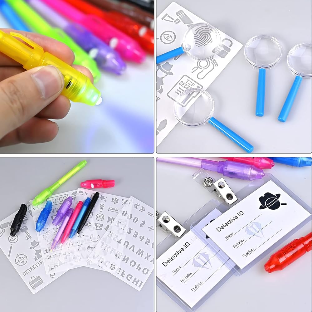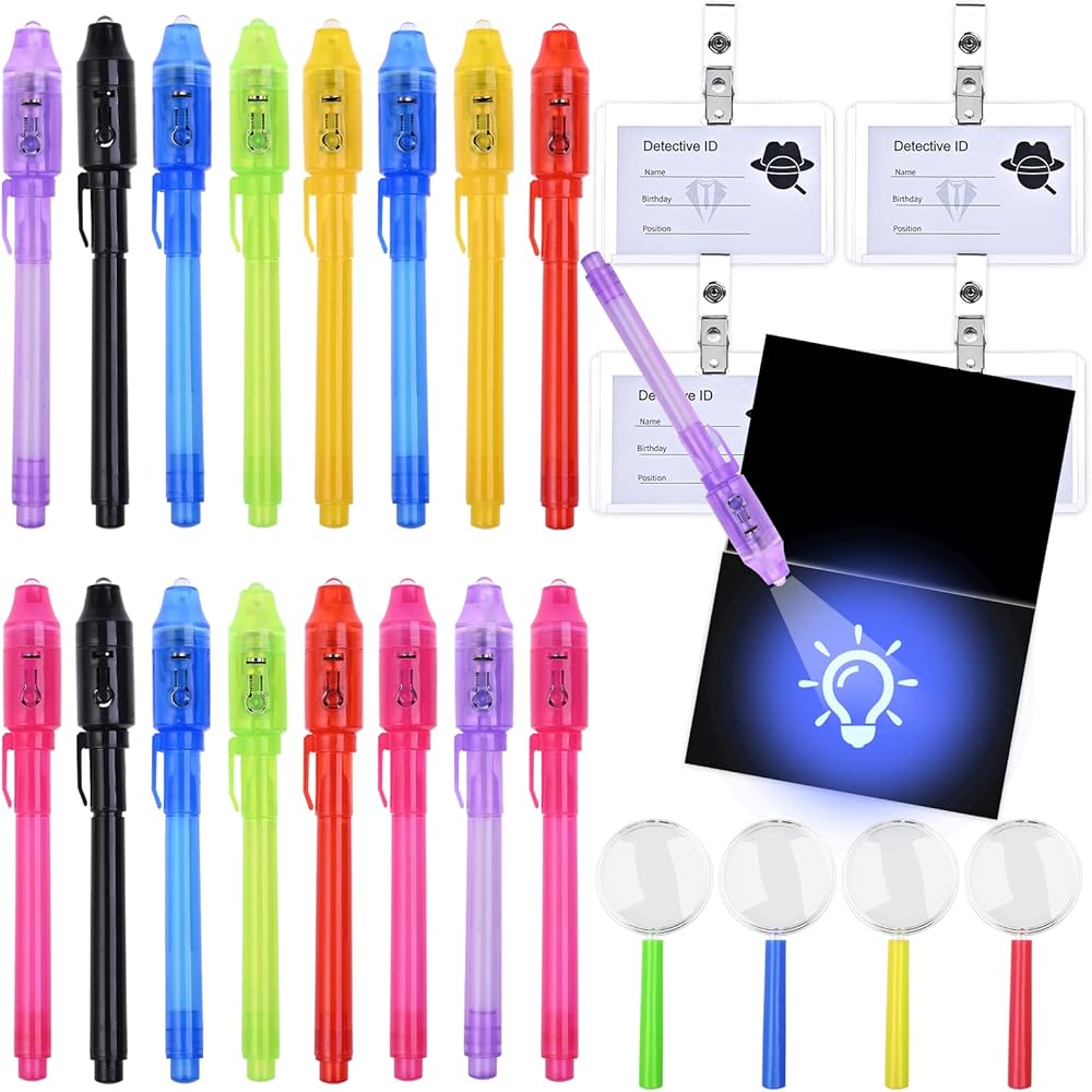16 قلم حبر غير مرئي من فابورو، عبوة مكونة من 16 قلم حبر غير مرئي مطور مع قلم ضوء الأشعة فوق البنفسجية لأعياد ميلاد الأطفال، نظارات مكبرة، بطاقة هوية المحقق، بطاقة النموذج