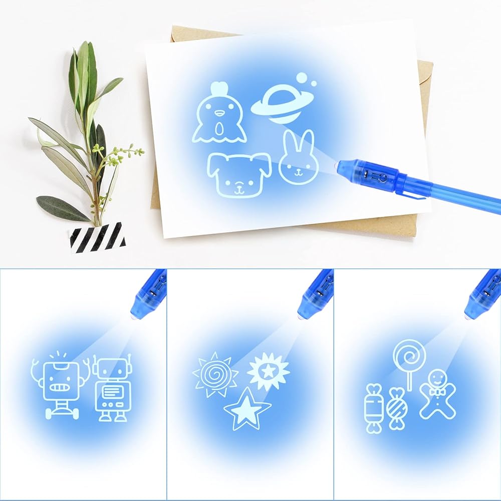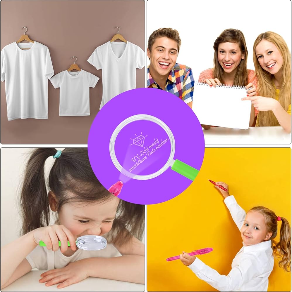 أقلام حبر غير مرئية: حبر غير ضار ولا طعم له، لعبة صحية لأطفالك! أحبار ناعمة وملونة تختفي على القمصان والورق والجلد وأي سطح!