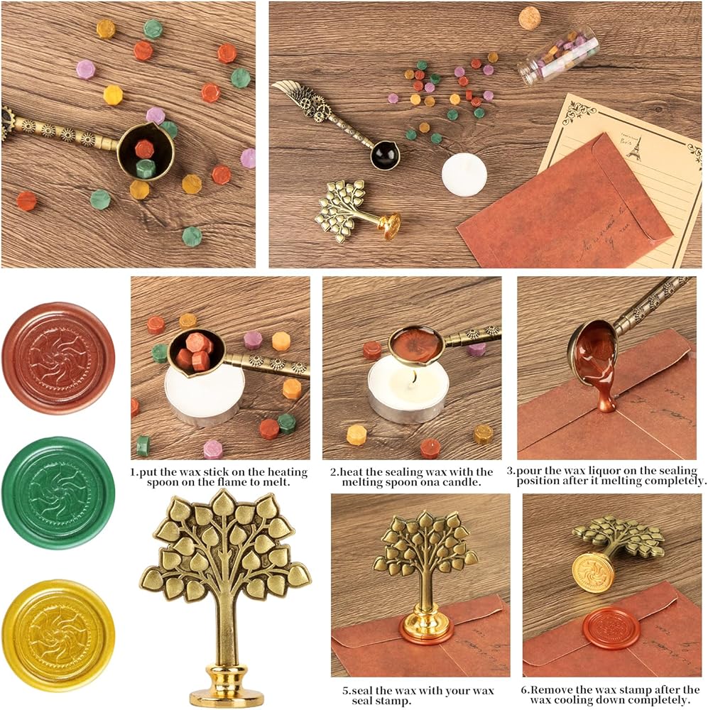 • 【WAX SEAL STAMP KIT】: Our wax stamps are made of high quality brass heads and bronze, with a unique tree of life design, stamp with "Pinwheel" pattern.The brass head with stamp is removable and can be used with any stamp pattern. The accessories are very complete, with 1 bottle of colored wax beads(4-5 pills at a time). It can not only decorate, embellish, invitations, envelopes, postcards, gift stamps and other private messages.can also avoid opening important files.