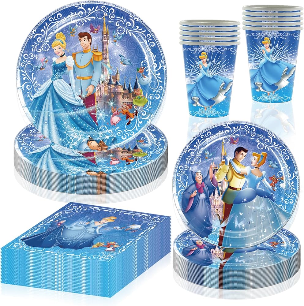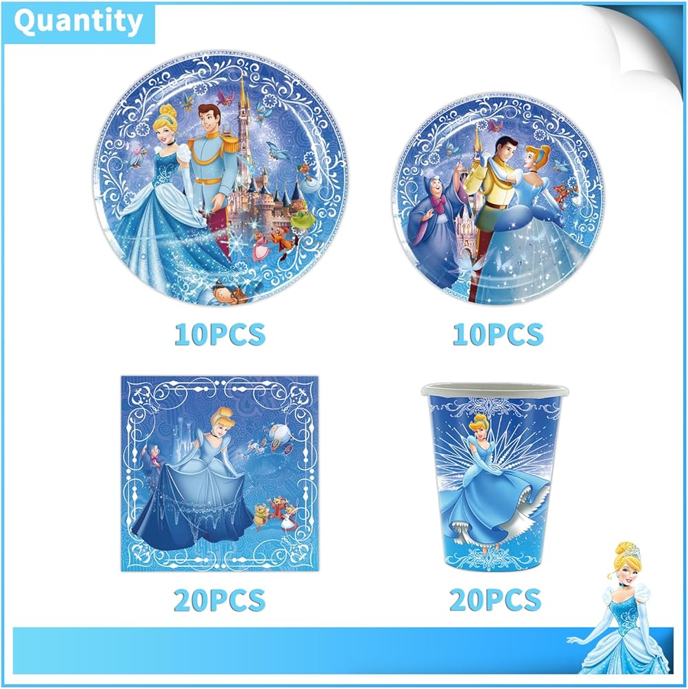60 قطعة من لوازم حفلات اعياد الميلاد سندريلا 20 طبق + 20 منديل + 20 كوب لتزيين حفلات اعياد الميلاد بطابع الاميرة، ادوات مائدة للاستعمال مرة واحدة للعشاء والحلوى والكيك