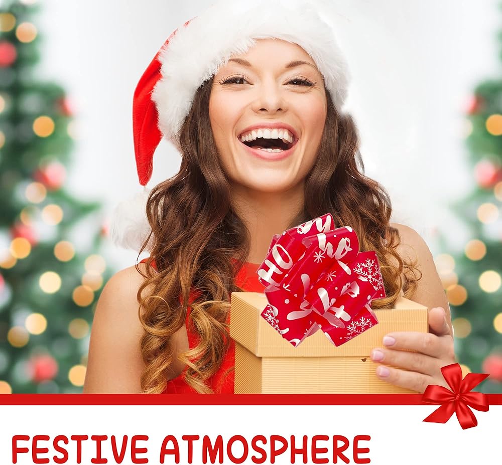 مجموعة فيونكات سحب للكريسماس مع 10 أشرطة فيونكات مع أنماط هوهوهو الأنيقة. تلبي ربطات الهدايا هذه جميع احتياجاتك لتزيين الهدايا. ربطات الهدايا هذه رائعة للغاية وستضيف لمسة رائعة للكريسماس إلى عبوات الهدايا الخاصة بك.