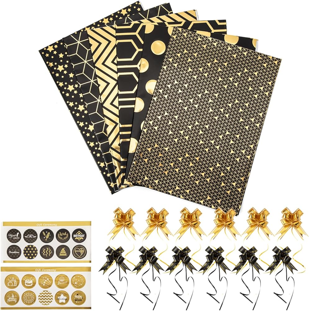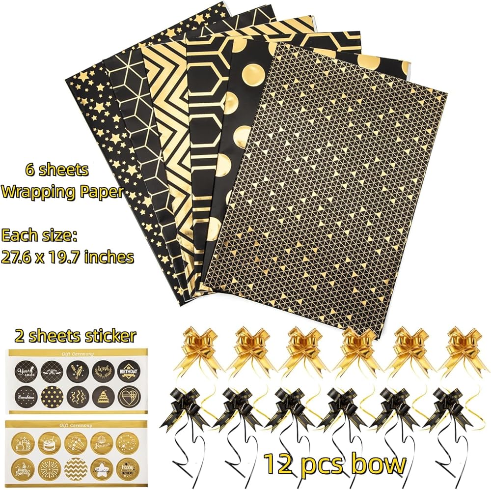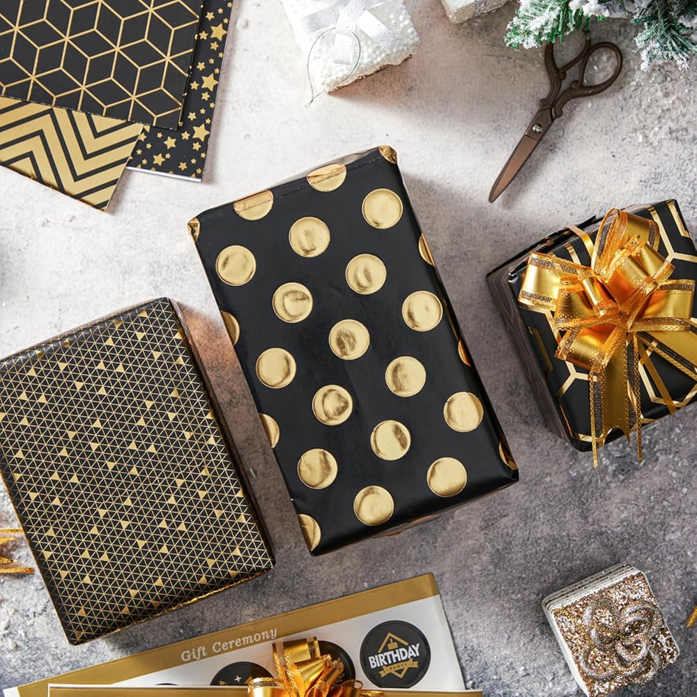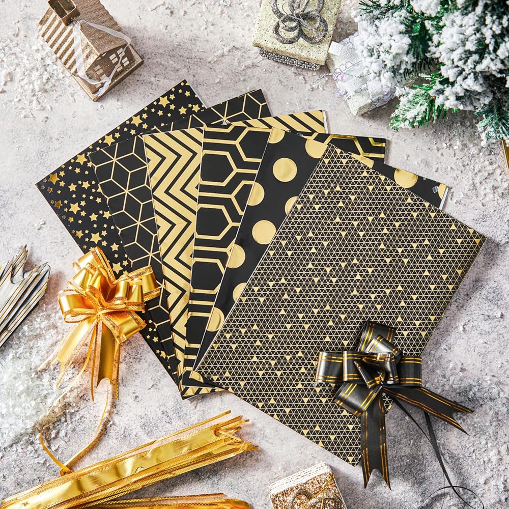 Elegant Holiday Packaging: Offer premium black and gold Christmas gift wrapping paper and bows that add a touch of sophistication and luxury to holiday gifts.