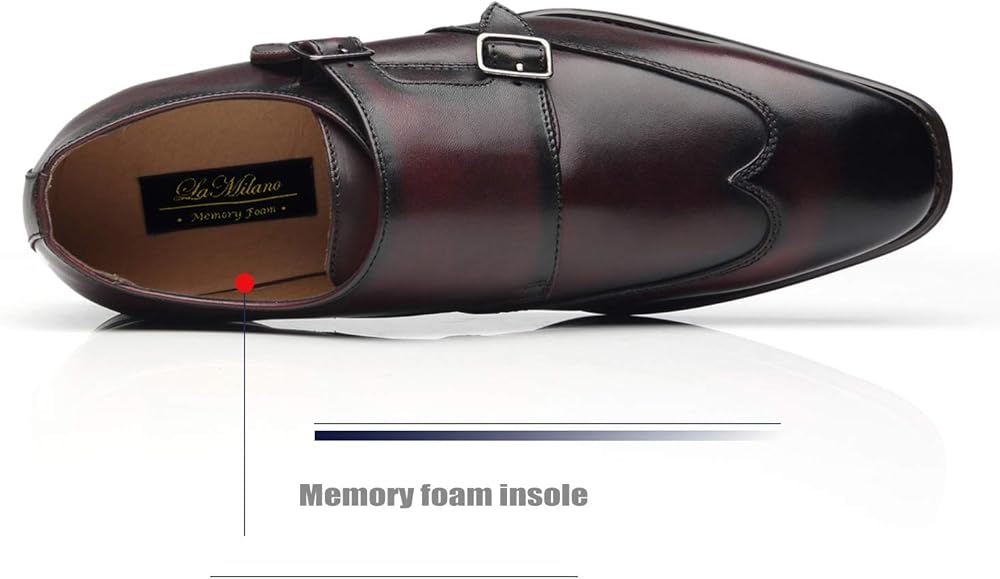 فستان La Milano للرجال برباط من أكسفورد كلاسيكي بمقدمة عادية وحديث من الجلد، Edna-1-burgundy، 9