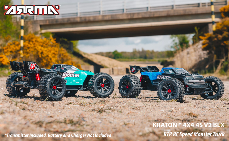• المكونات المتضمنة: 1/10 KRATON 4X4 4S V2 BLX Speed ​​Monster Truck RTR، أزرق مخضر