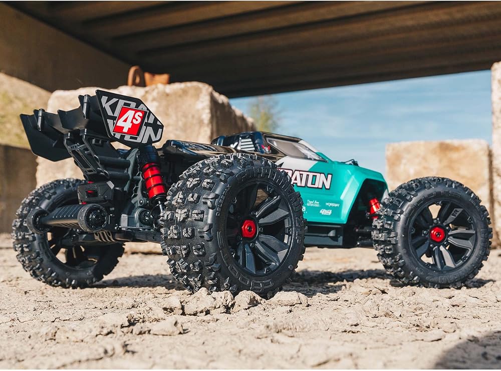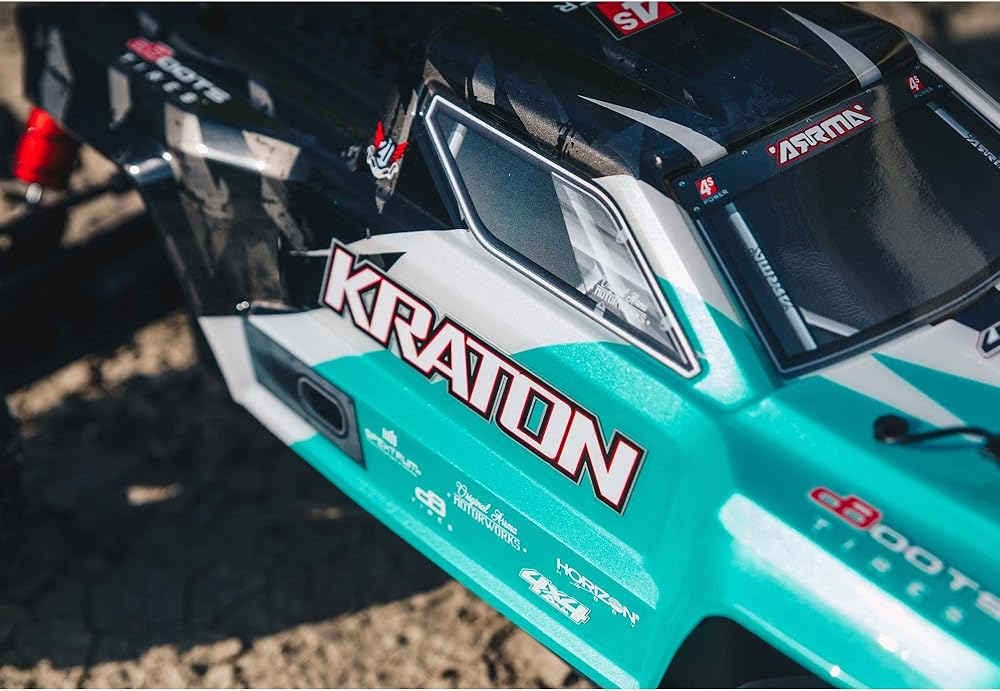شاحنة ARRMA RC 1/10 KRATON 4X4 4S V2 BLX Speed ​​Monster Truck RTR (البطاريات والشاحن غير متضمنة)، أزرق مخضر، ARA4408V2T1