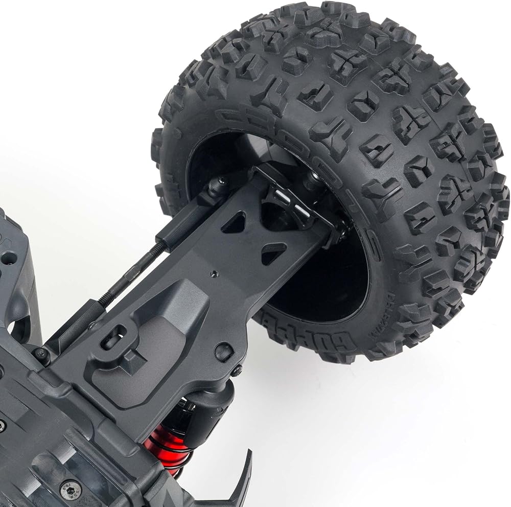 ميزات جديدة مساحة أكبر بنسبة 16% أطول وأوسع من منصة KRATON 4X4 4S السابقة لمزيد من الثبات، أذرع تعليق جديدة قوية تزيد من عرض السيارة، تروس تفاضلية رئيسية بوحدة 1.35 من الفولاذ المتين وتروس الإدخال في علب التروس الأمامية والخلفية، أعمدة إدارة تلسكوبية قوية CVD أمامية وخلفية أبراج صدمات أعلى، وممتصات صدمات أطول وأذرع تعليق أوسع لسفر تعليق أطول وأكثر فخامة، ممتصات صدمات كبيرة من الألومنيوم متضمنة كتجهيز قياسي باستخدام الحاسب الآلي، ومحاور عجلات مؤكسدة باللون الأحمر مقاس 17 مم، وحلقة تقوية لمحور النعال الفولاذي، Spektrum Firma 120A ESC بدون فرش ومحرك 3668 2400Kv Spektrum 2