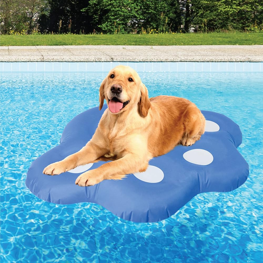 المرح في الشمس - في أيام الصيف الحارة، دع جروك يبرد بأناقة! عوامة زرقاء على شكل مخلب تجلب المرح لصديقك المكسو بالفراء. مثالية لحمام السباحة أو البركة أو البحيرة أو مكان السباحة المفضل لديك.