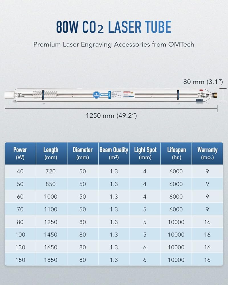 ضمان الرضا: اطلب أنبوب آلة النقش بالليزر هذا من OMTech اليوم واستمتع بالشحن السريع في الولايات المتحدة، وسهولة التوصيل بأسلاك ومنافذ التوصيل المثبتة مسبقًا، وضمان رائد في الصناعة لمدة 9 أشهر، وخدمة عملاء ودعم فني مفيد على الإطلاق