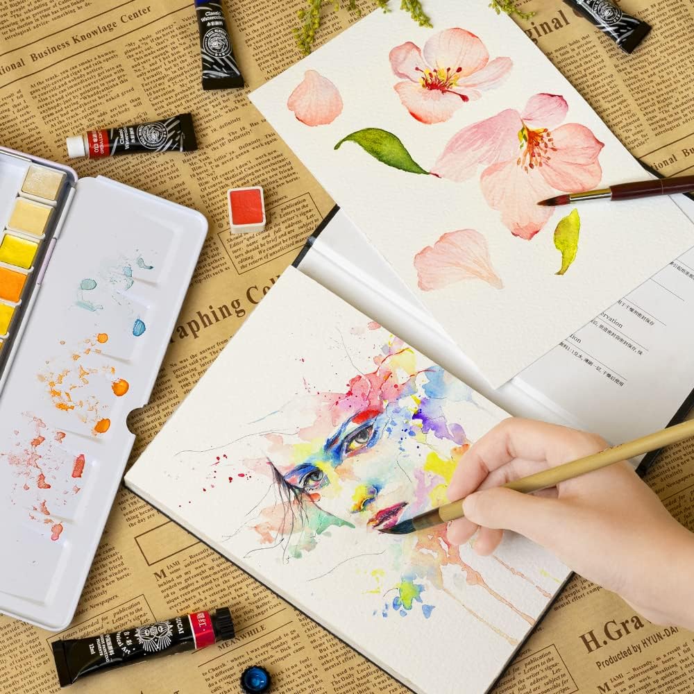 مجلة جودة الفنانين بتصميم رائع: تتضمن ورقة الألوان المائية 3 رسوم توضيحية جميلة لفنانين بالألوان المائية في كل بضع صفحات، وتتميز بألواح أكثر سمكًا لدعم إبداعك. مثالية كهدية للأصدقاء والأطفال والفنانين.