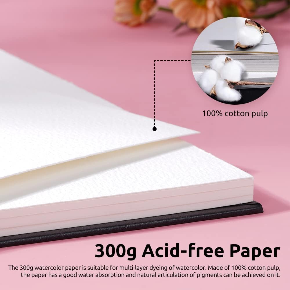 ورق ألوان مائية عالي الامتصاص: ورق الألوان المائية مصنوع من القطن الفاخر طويل التيلة مع قدرة عالية على الامتصاص، والذي يمكنه امتصاص ألوان الأصباغ بشكل أفضل ويقصر الوقت الذي يجب أن تنتظره حتى يجف الطلاء في الهواء.