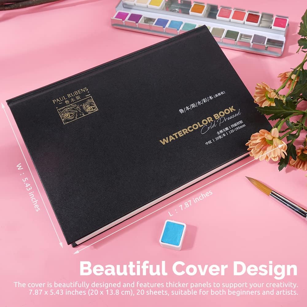 كتلة الوان مائية من بول روبنز، عالية الامتصاص، دفتر رسم بالوان مائية مضغوطة على البارد بجودة الفنانين، 100% قطن 140 باوند (300 غرام لكل متر مربع)، مقاس 7.87 × 5.43 انش للمبتدئين والمحترفين