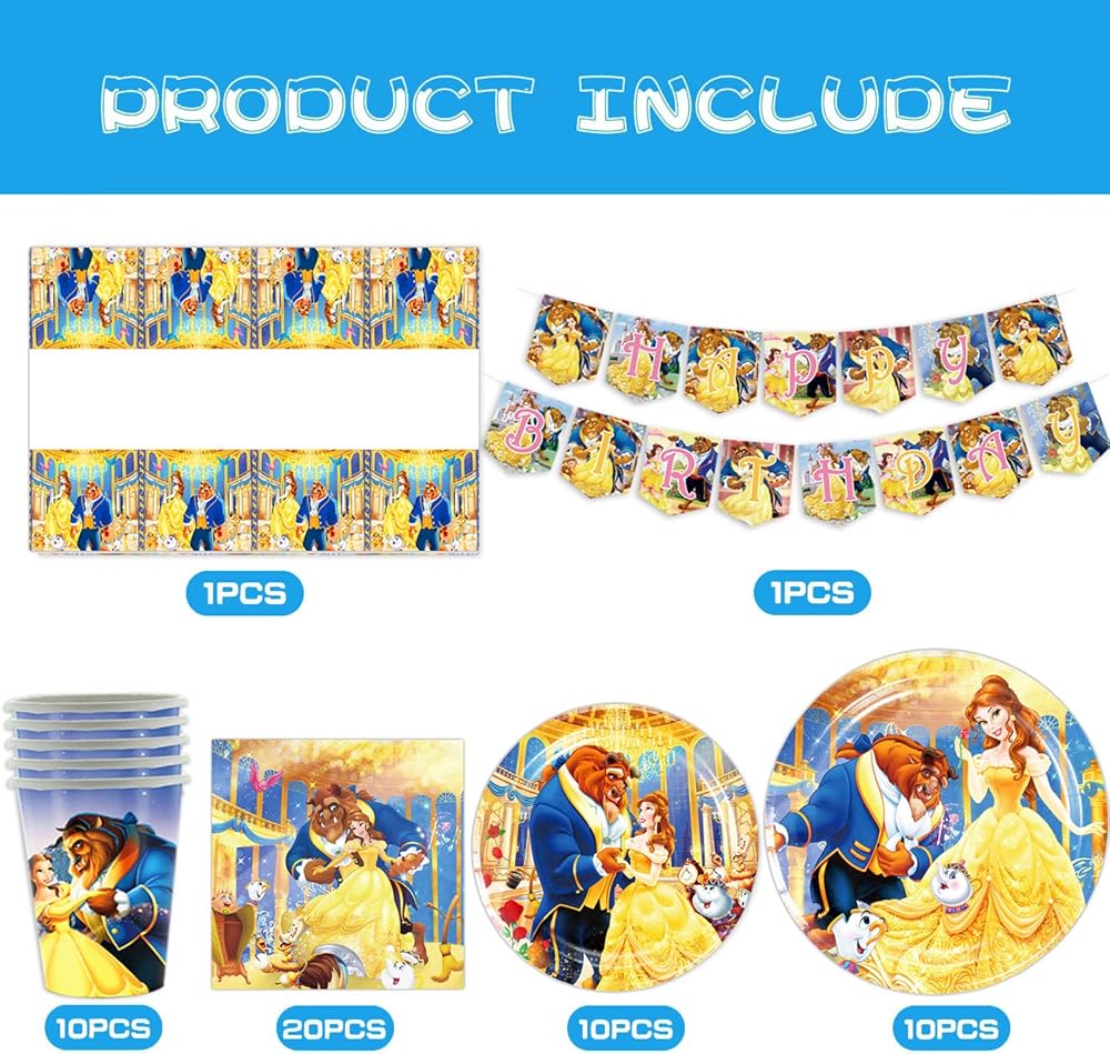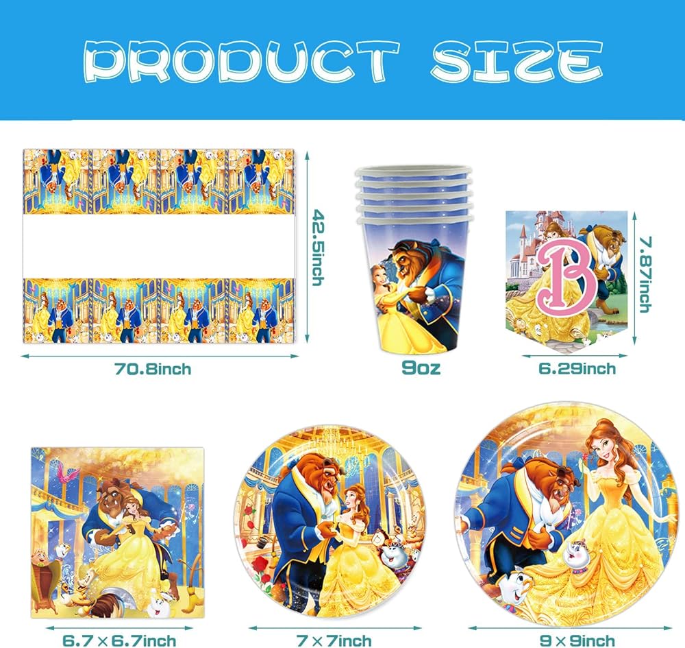 【Beauty and the Beast Party supplies】Beauty party supplies Included: 10pcs 9"+10pcs 7'' Princess plates,10*Cups,20*Napkins, 1*Tablecover,1*Banners,enough quantity for Princess theme birthday big day!