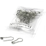 تمامًا مثل دبابيس الأمان العادية ولكن مع جمال الكفالة الأنيقة. استخدمها ككفالة على القلائد أو كدبابيس! يبلغ قياسها حوالي 22 مم (7/8 بوصة) من الأعلى إلى الأسفل وعرضها 10 مم (3/8 بوصة) عند أوسع نقطة. يبلغ سمك السلك نفسه حوالي 0.75 ملم. حزمة من 50.