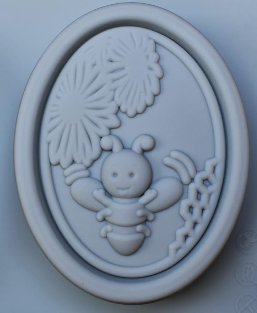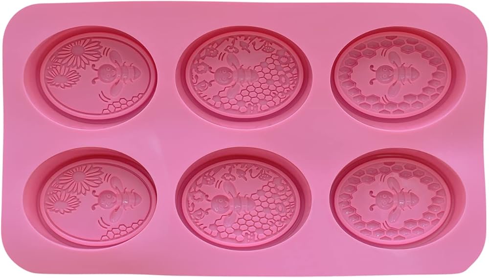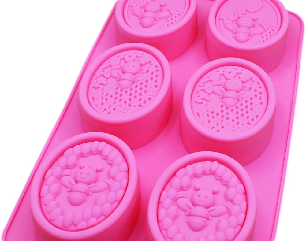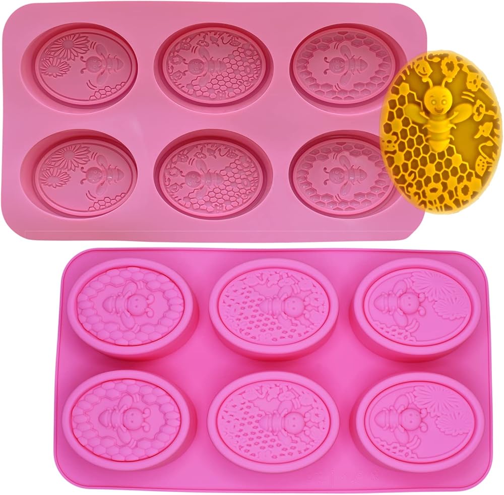 قالبان سيليكون على شكل نحلة وعسل النحل لكل طلب. يبلغ مقاس كل قالب صابون على شكل نحلة 11 × 6.25 وعمق 1.1 انش. يبلغ مقاس كل تجويف بيضاوي من السيليكون 3.1 × 2.35 وعمق 1.1 انش.