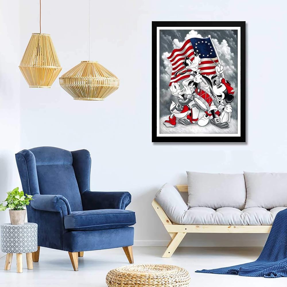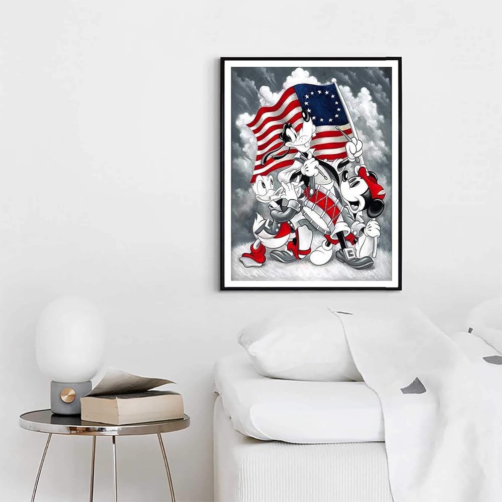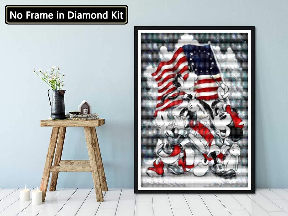بالوديو مجموعة رسم ماسي 5 دي على شكل بطة فأر وكلب العلم الامريكي، طلاء مع الماس فن رسم كرتوني بالارقام، مثقاب دائري بالكامل بغرزة متقاطعة، حجر الراين الكريستالي، ديكور حائط المنزل، 12 × 16 انش