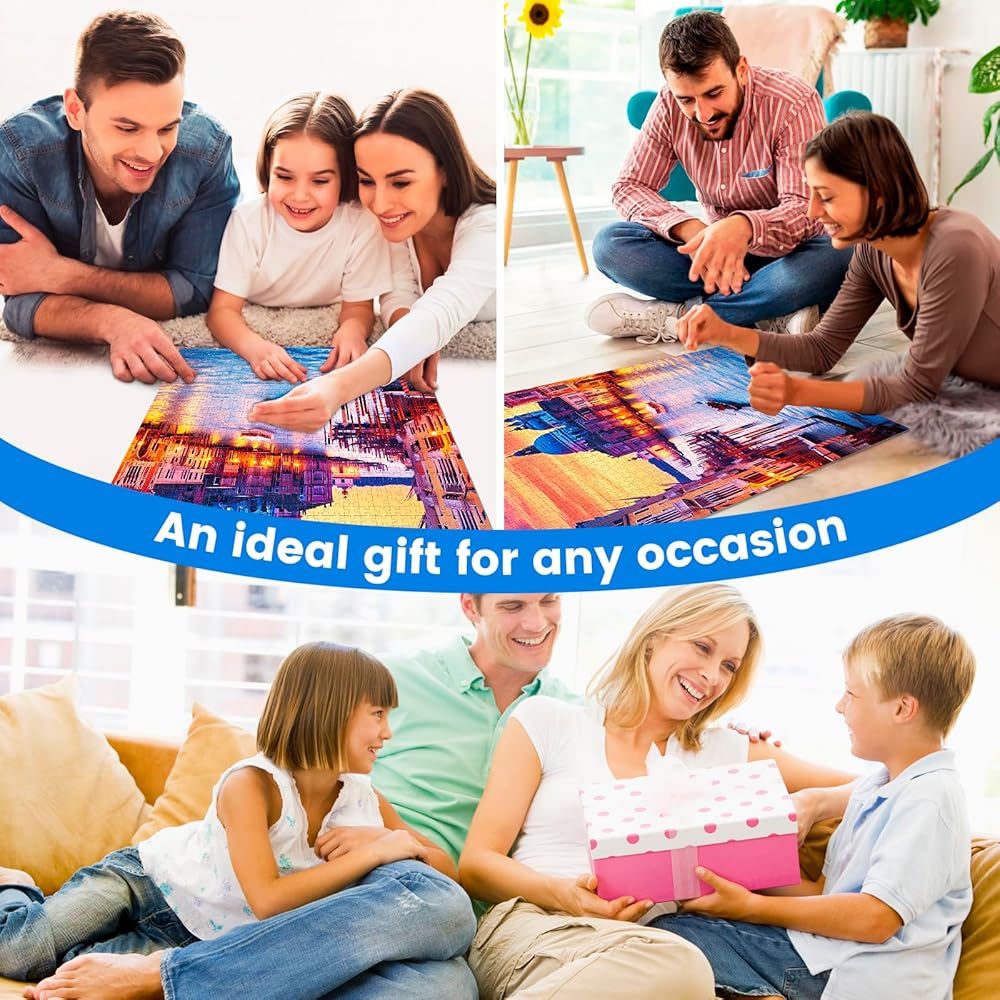 🧩[High Quality Material] --- Our puzzles for adults 1000 pieces are made of 100% recycled paperboard material. Less puzzle dust, better experience! Each package boasting a challenging 1000 pieces, reference poster and puzzle gift box.