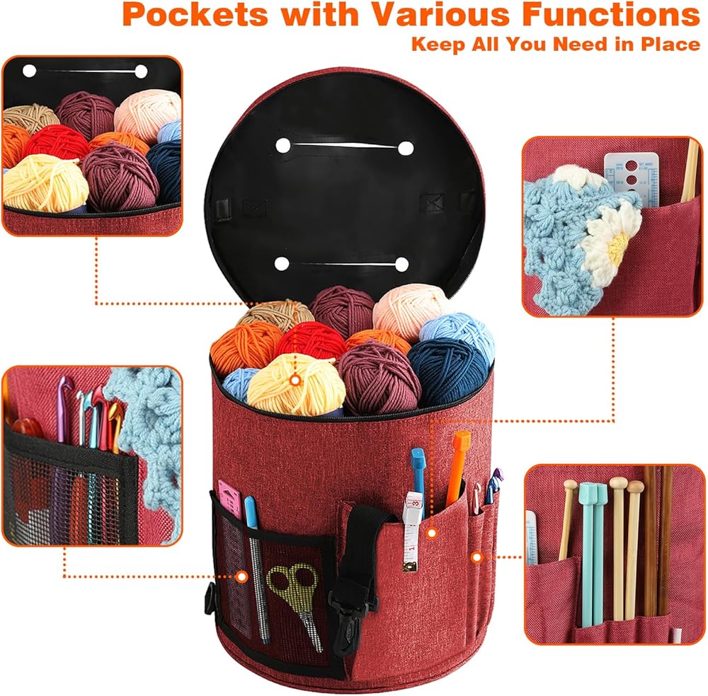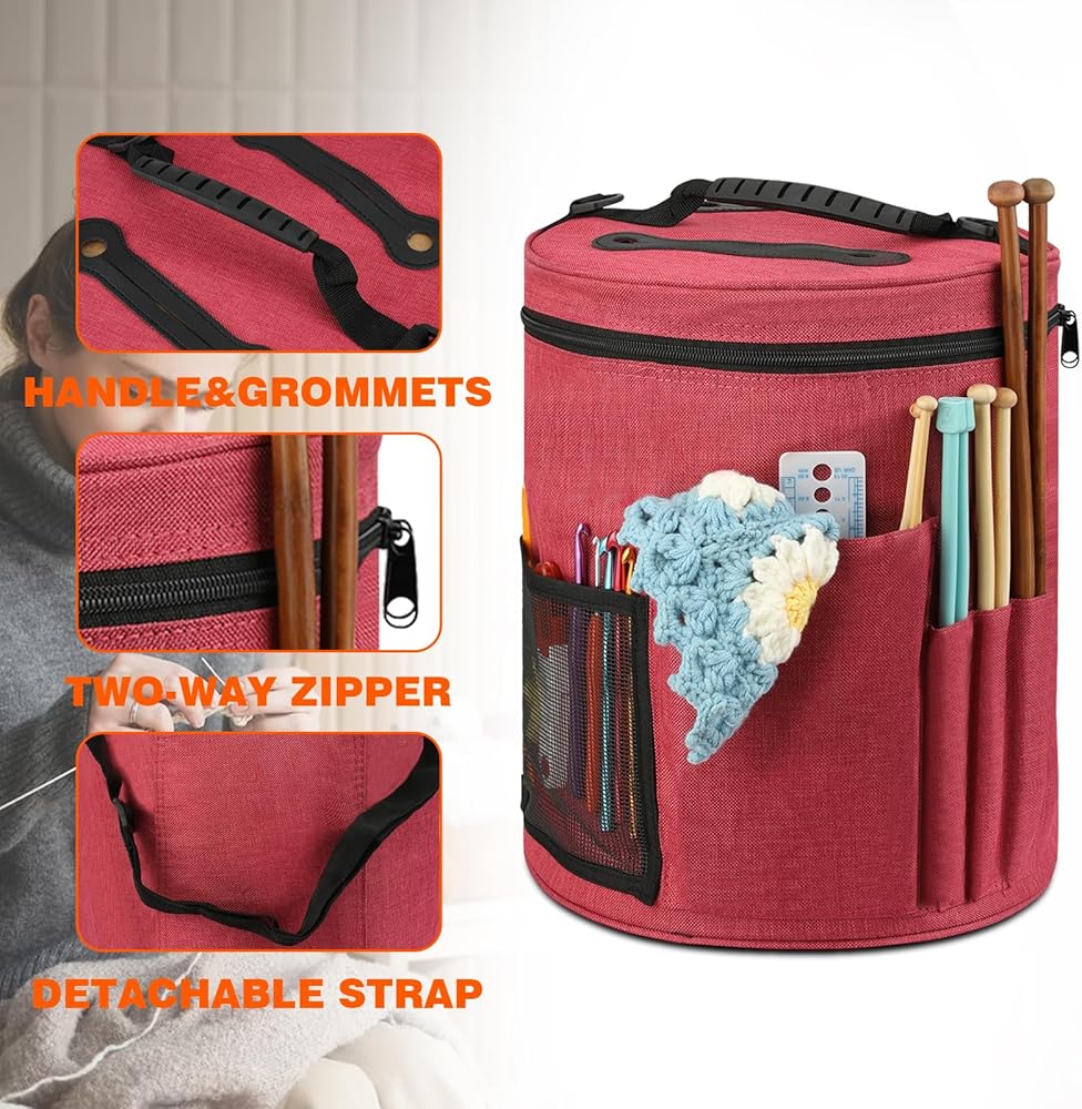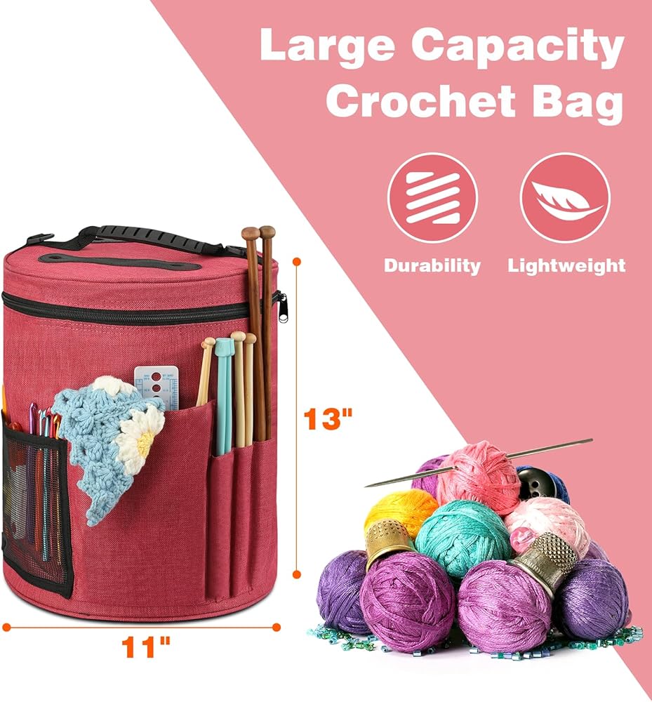 • [تخزين أفضل]--حقيبة الكروشيه هي إكسسوار يجب اقتناؤه للاستخدام المنزلي وهي طريقة رائعة للحفاظ على جميع أدوات الحياكة الخاصة بك في حقيبة واحدة، يسهل العثور عليها والوصول إليها. واسعة بما يكفي لتخزين الخيوط الكبيرة ولوازم الحياكة المتنوعة و الأدوات التي تحتاجها.