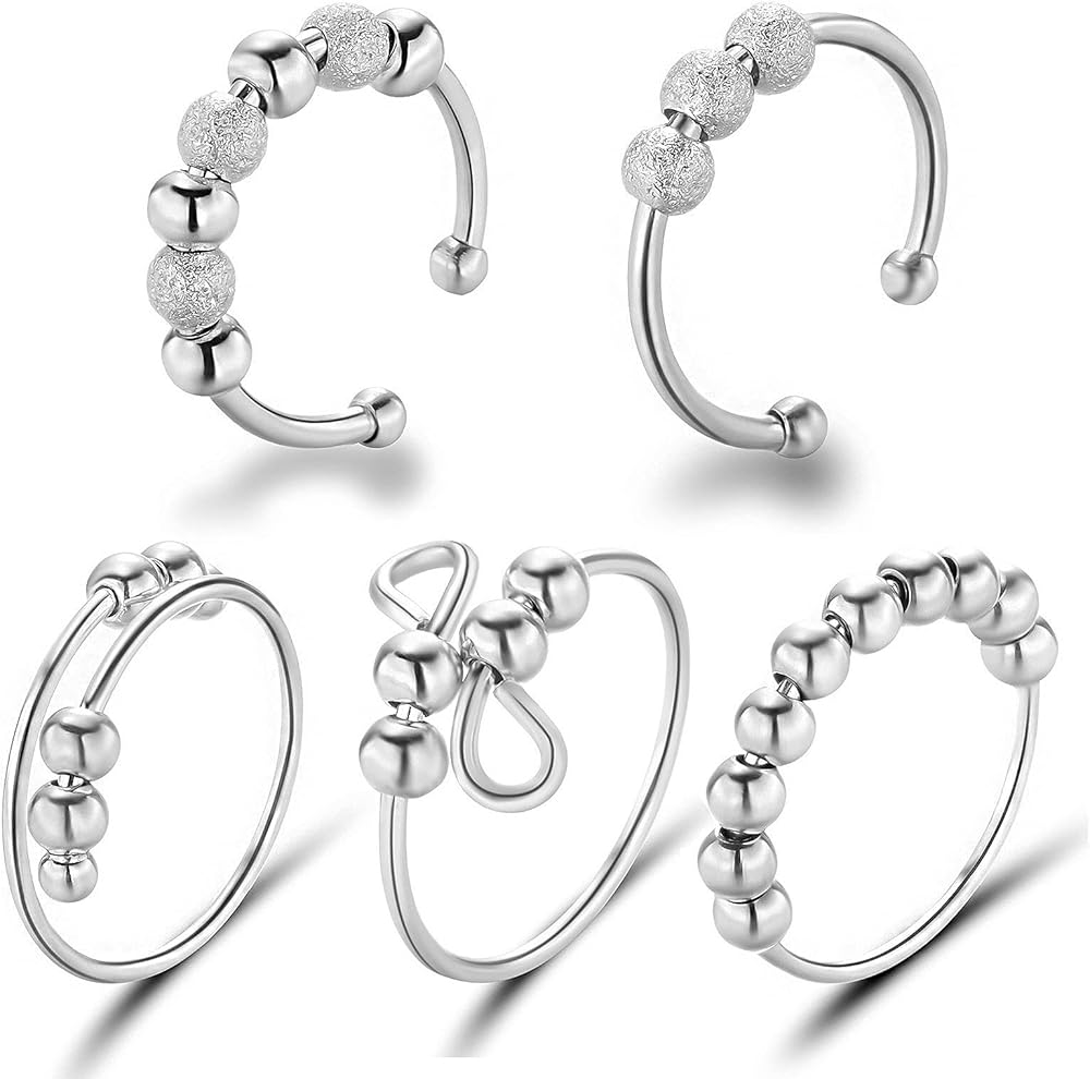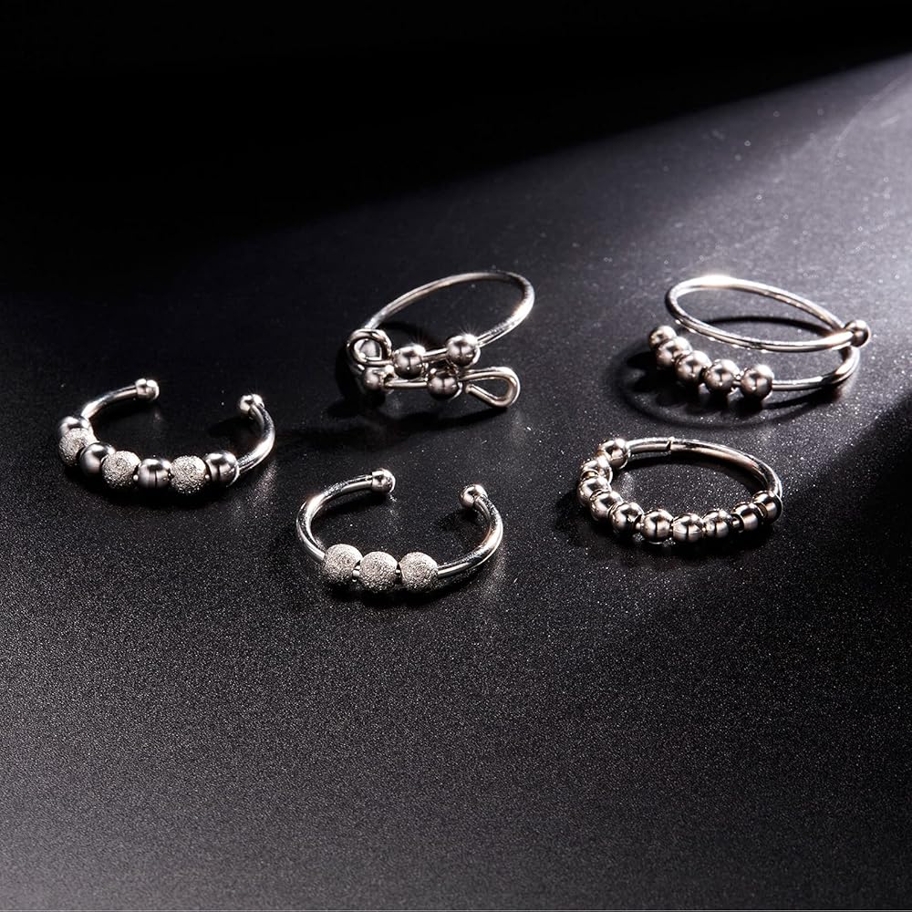 【تشمل العبوة】: سوف تحصل على 5 قطع من حلقات القلق الدوارة بأنماط مختلفة، مناسبة لجميع أصابعك، مما يسمح لك بارتدائها لحضور مناسبات مختلفة.