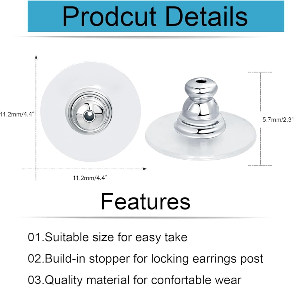 ملاءمة متعددة الاستخدامات: مناسبة لأعمدة الأقراط التي يصل قطرها إلى 0.7 مم، مما يوفر ملاءمة مريحة ومريحة.