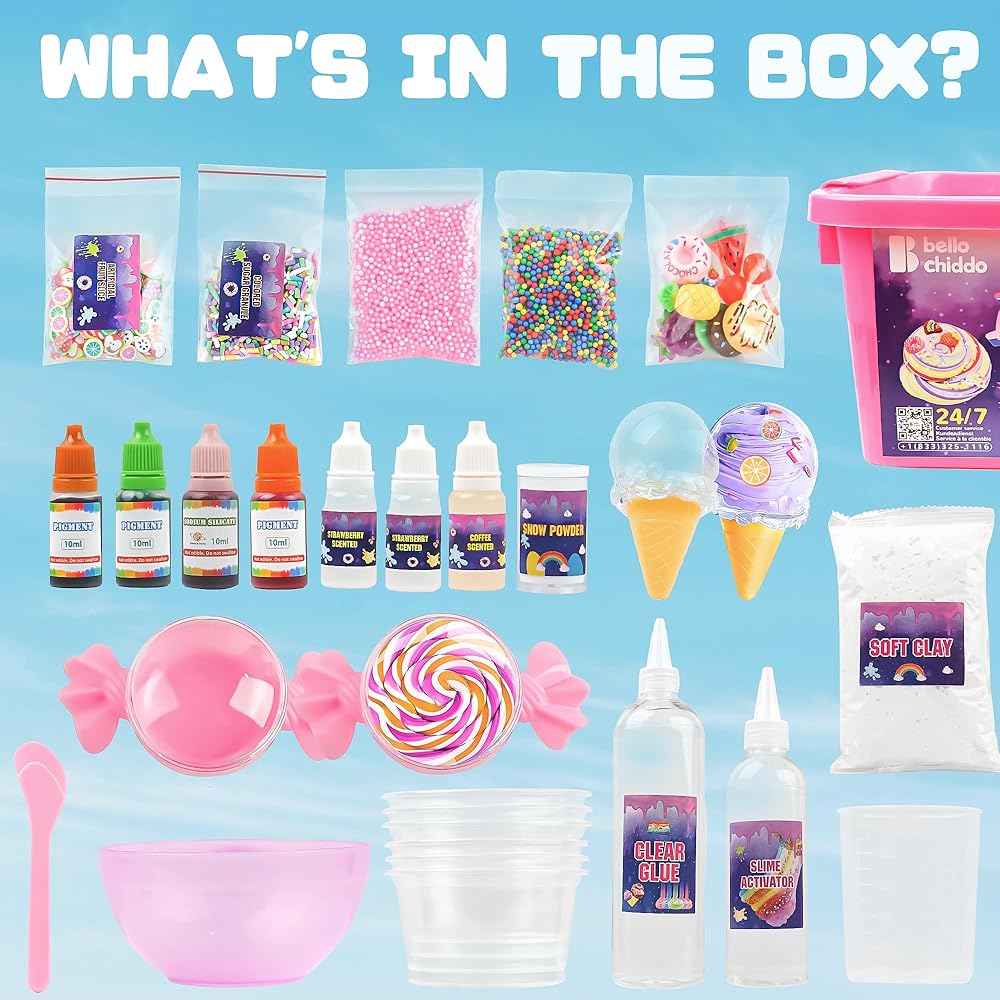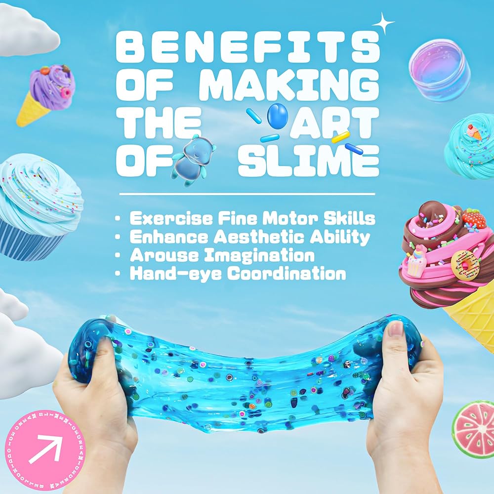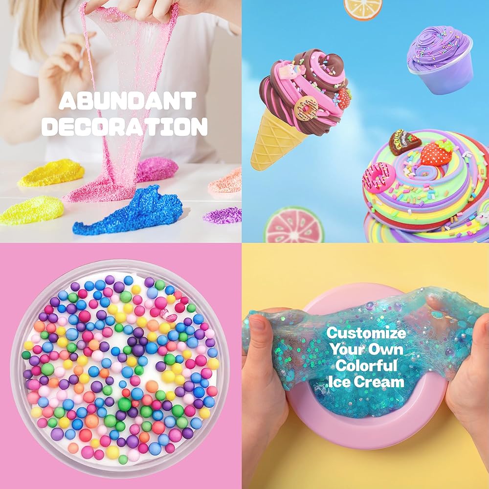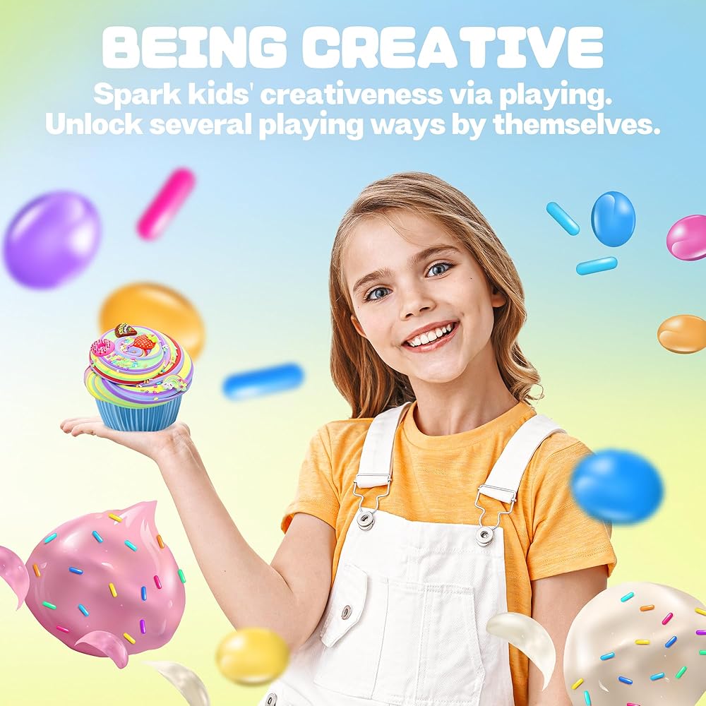 فتح مجموعات متنوعة - يمكن إنشاء هذه الألعاب السحرية للفتيات من عمر 8 إلى 10 سنوات بأشكال مختلفة مثل سلايم الآيس كريم، وسلايم القطن، وسلايم الفاكهة، وسلايم كرة الفقاعات، وسلايم قوس قزح، وسلايم الثلج. مجموعات رائعة متعددة تنتظر استكشافك. إنها أيضًا أفكار هدايا عيد ميلاد لفتاة تبلغ من العمر 5 سنوات.