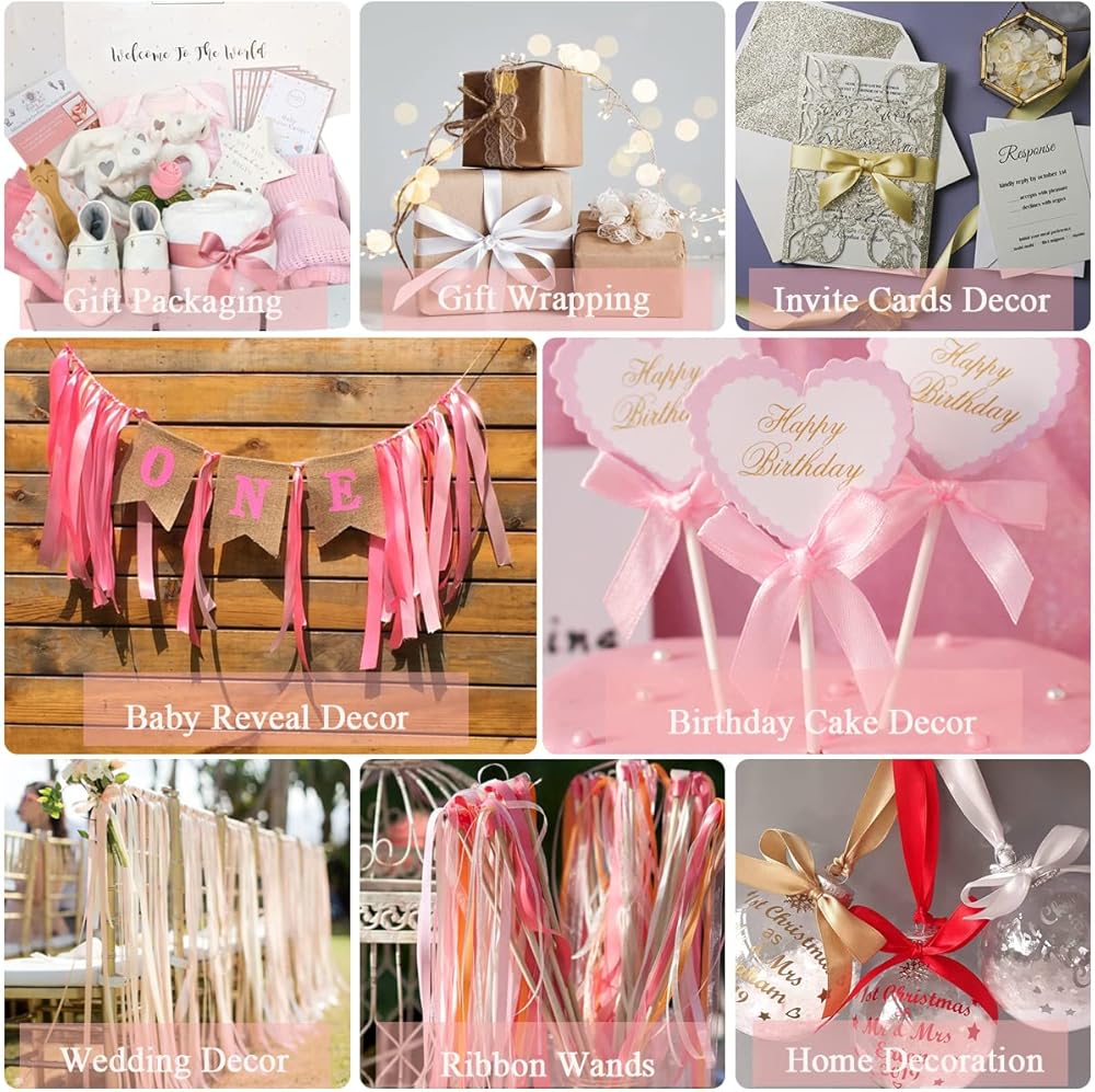 ألوان زاهية - شريط HLOMVE مزدوج الوجه عبارة عن شريط ساتان متطور مع مزيج مثالي من النعومة واللمعان. يحتوي شريط الساتان على 4 ألوان اختيارية (ذهبي، أبيض، وردي، ذهبي وردي، وردي فاتح)، لون الشريط مشرق وحيوي، مما يجعله خيارًا ممتازًا لتزيين أي مناسبة وتغليف الهدايا.