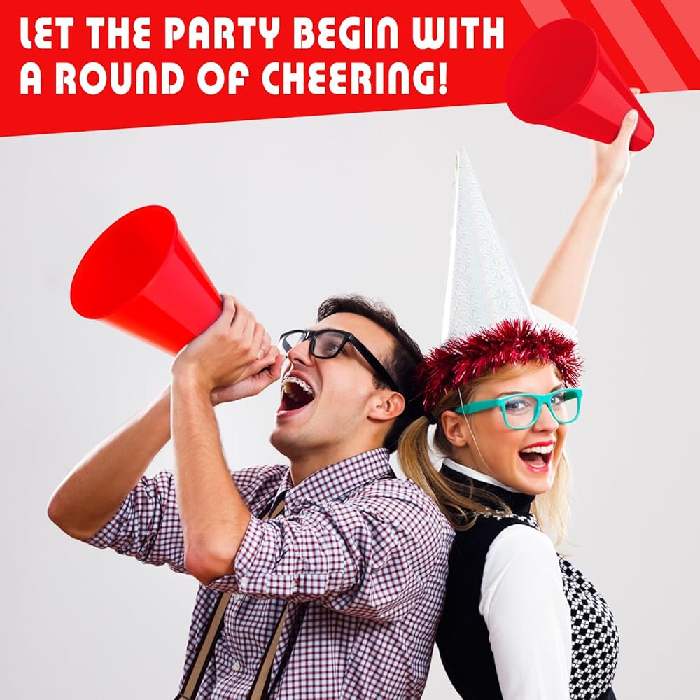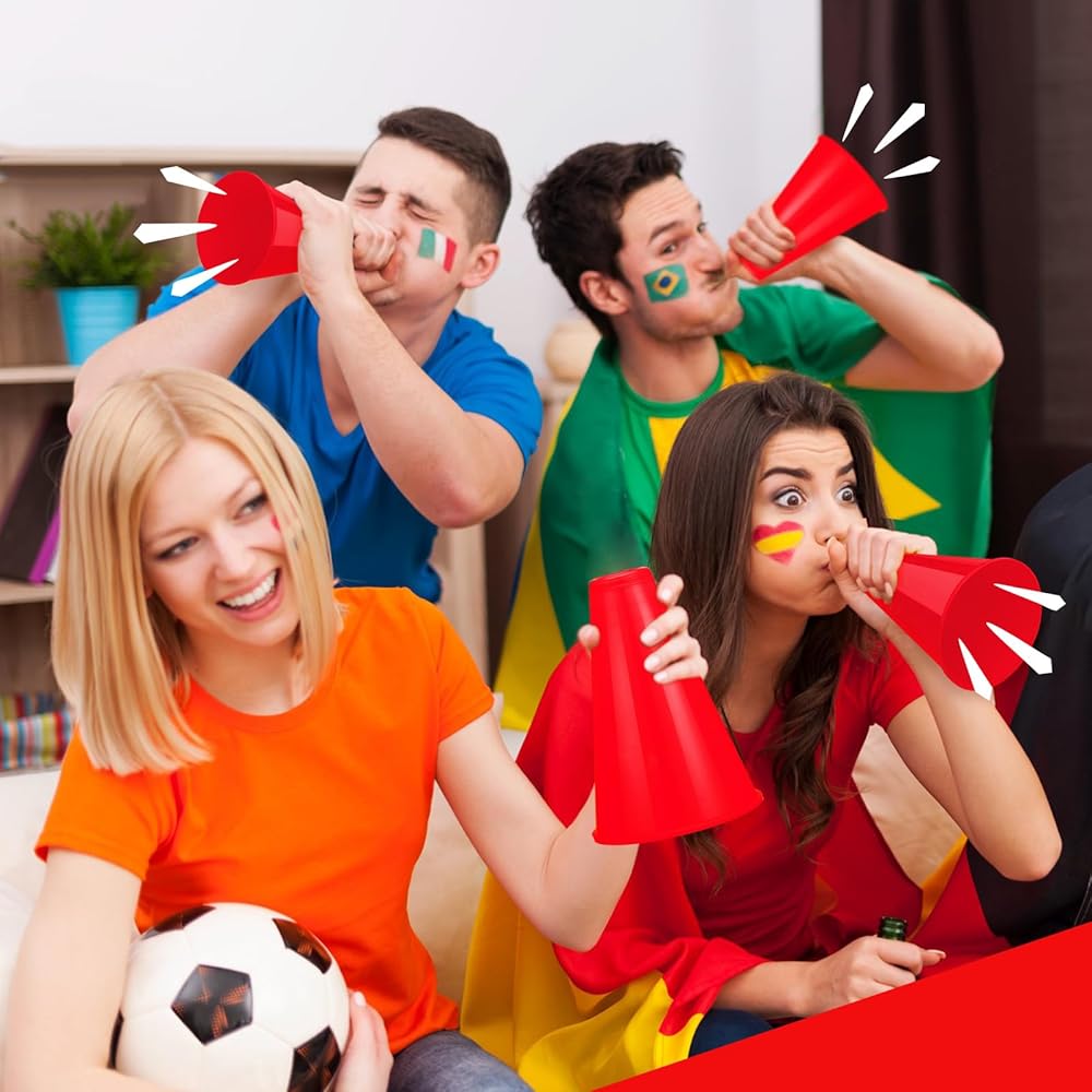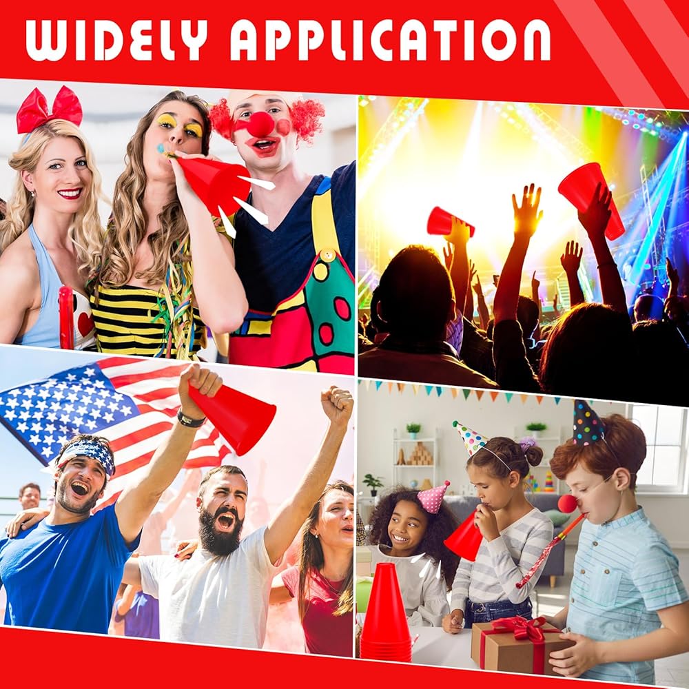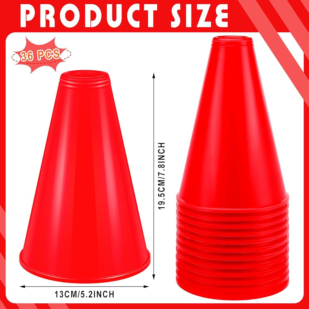DEEKIN 36 قطعة من ملحقات الحفلات مكبر الصوت الأحمر يهتف مكبر الصوت البلاستيكي التشجيع مكبر الصوت مدير دعامة ألعاب صانع الضوضاء للحفلات المفضلة لعبة المطابقة الرياضية والأنشطة الخارجية