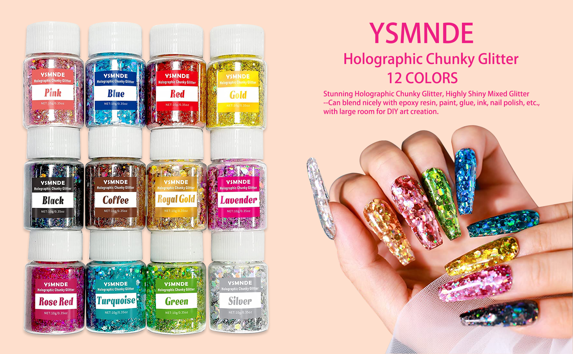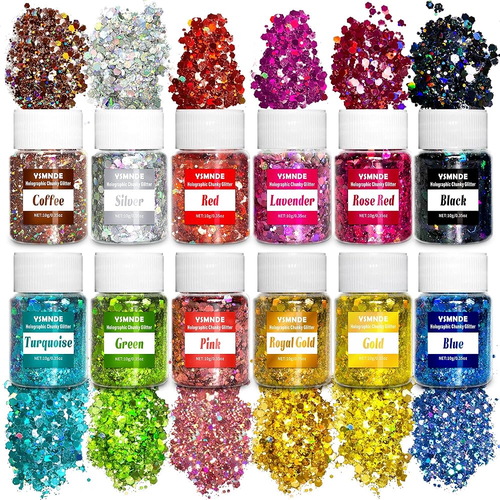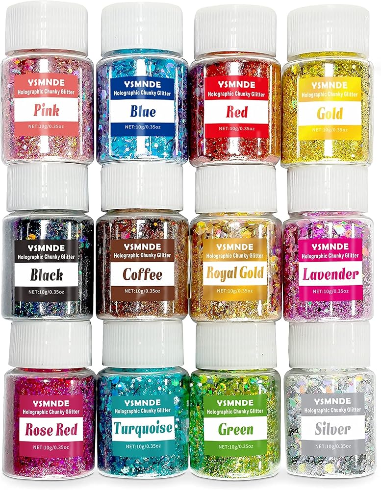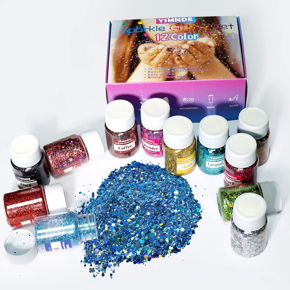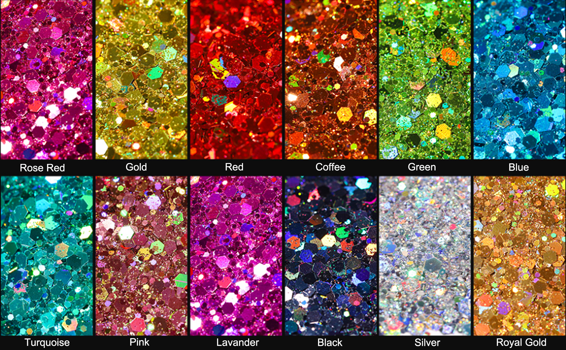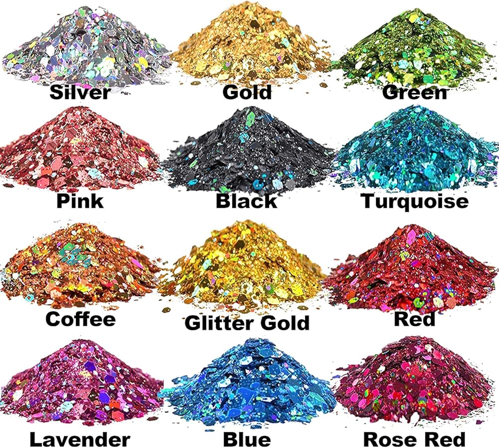 🎨 استخدامات غير محدودة: تضفي التألق واللمعان على أي مشروع، مثل صناعة مجوهرات الراتنج، وأكواب الإيبوكسي، والسلايم، والصور المجمعة، والبطاقات البريدية، والأظافر، وبطاقات تهنئة سجل القصاصات، وديكورات العطلات، والملابس المخصصة، والمشروعات المدرسية، ومناسبة للمهرجانات، وديكورات الرقص، والمزيد .