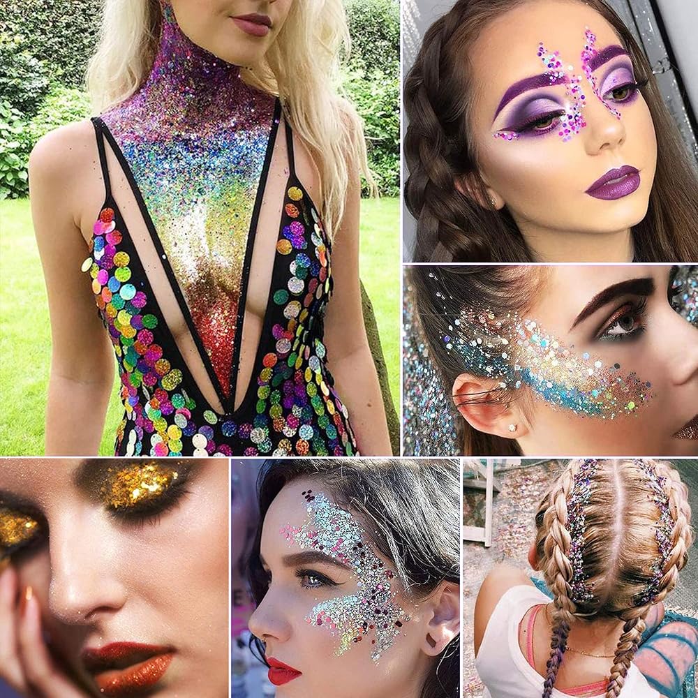 💝 آمنة على البشرة: هذه الملمعات ثلاثية الأبعاد للجسم مصنوعة من مادة تريفثالات الأثيلين المتعدد PET عالية الجودة، وهي غير سامة وآمنة للاستخدام مع الأطفال. لطيفة على البشرة، ويمكن وضعها مباشرة على الوجه والجسم والأظافر، لذلك فهي أيضًا ملمع تجميلي رائع، وقادرة على العمل كملمع للأظافر، ولمعان للجسم، ولمعان للعين، ولمعان للوجه، ولمعان للشعر، كما أنها لطيفة لصنع ظلال العيون. ملمع الشفاه، جل لامع، إلخ.