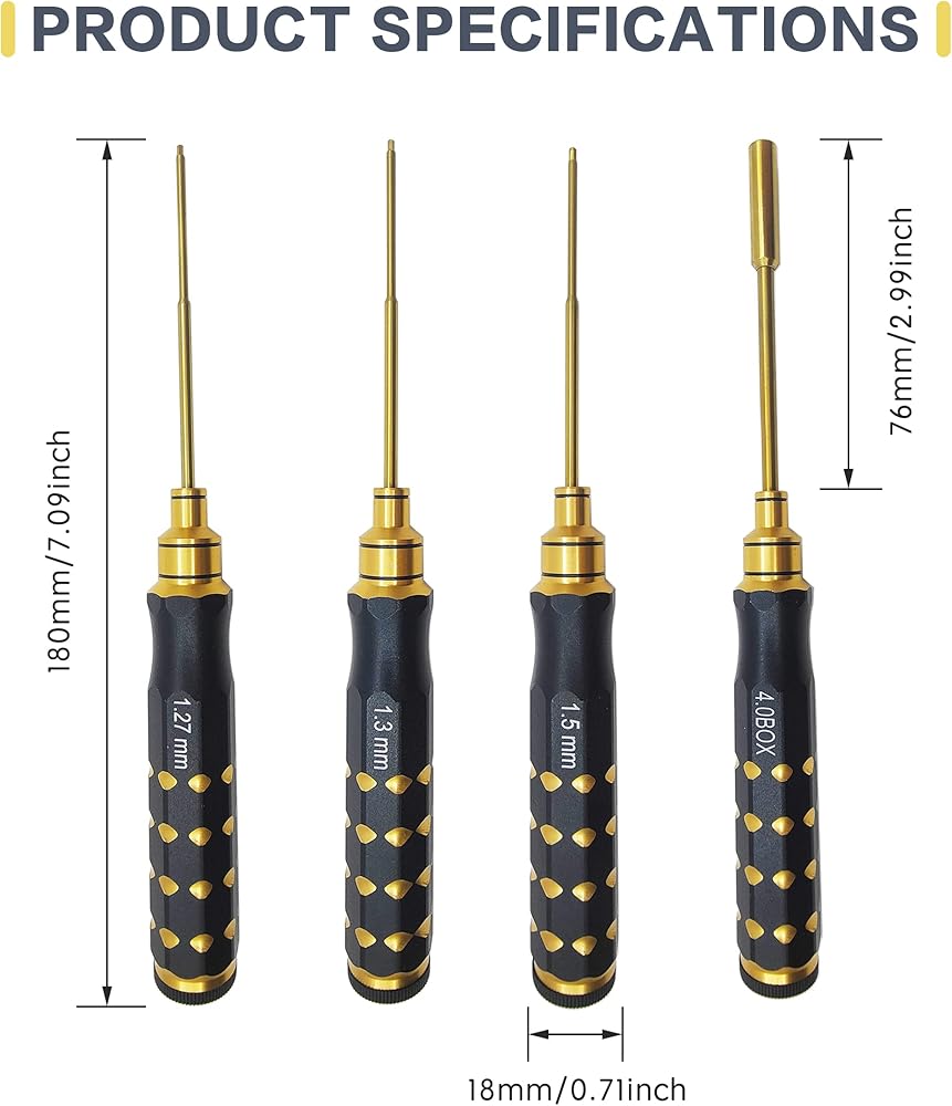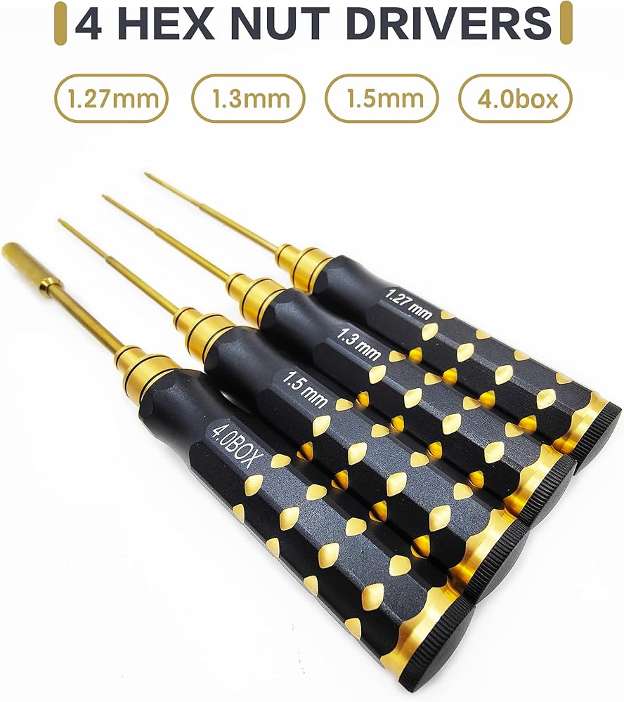 VICRAZZE RC سيارة أداة مجموعة 1.27 مللي متر 1.3 مللي متر 1.5 مللي متر 4.0 مللي متر (صندوق) التيتانيوم مسدس مفك RC إصلاح وجع أدوات عدة ل محوري SCX24 4 قطعة