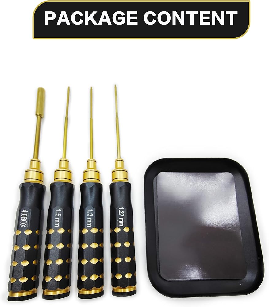• 【Package Includes 】The hexagon screwdriver wrench set includes 4 hex nut drivers(1.27mm, 1.3mm, 1.5mm, 4.0mm box), and come with a screw tray for convenient repairing working