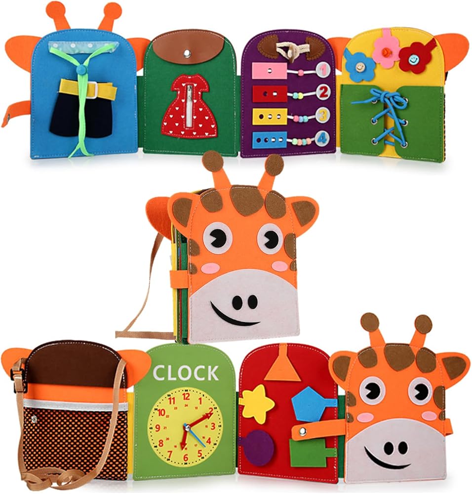 كتاب الأنشطة الهادئة للزرافة، 8 مهارات أساسية. كتاب مشغول للأطفال الصغار، لعبة حسية للأطفال الصغار. تنمية المهارات الحركية والمعرفية والحسية. كتاب السيارة المزدحمة مثالي للسفر. حقيبة ظهر الزرافة
