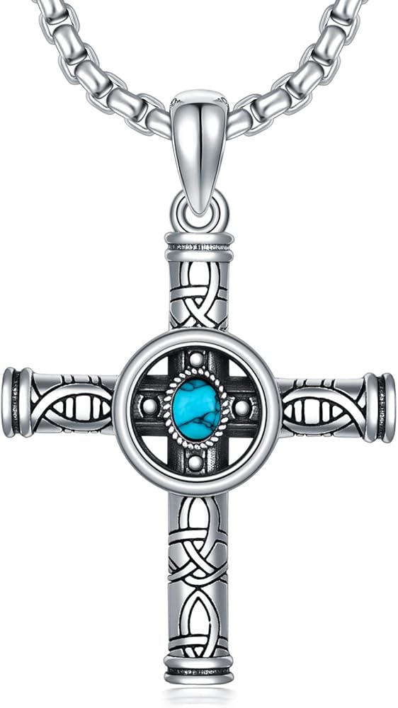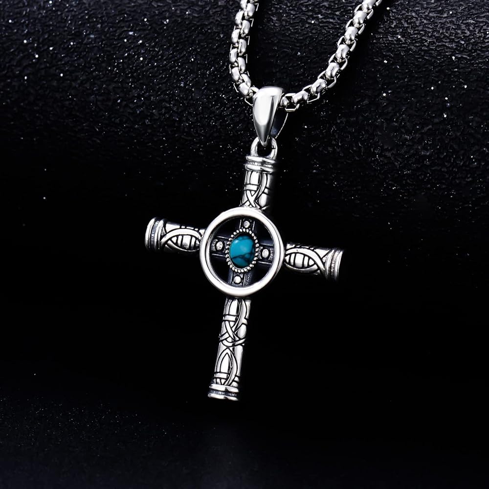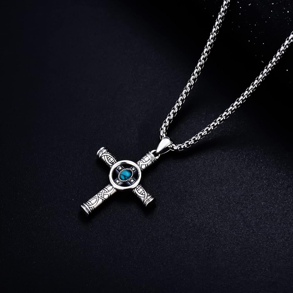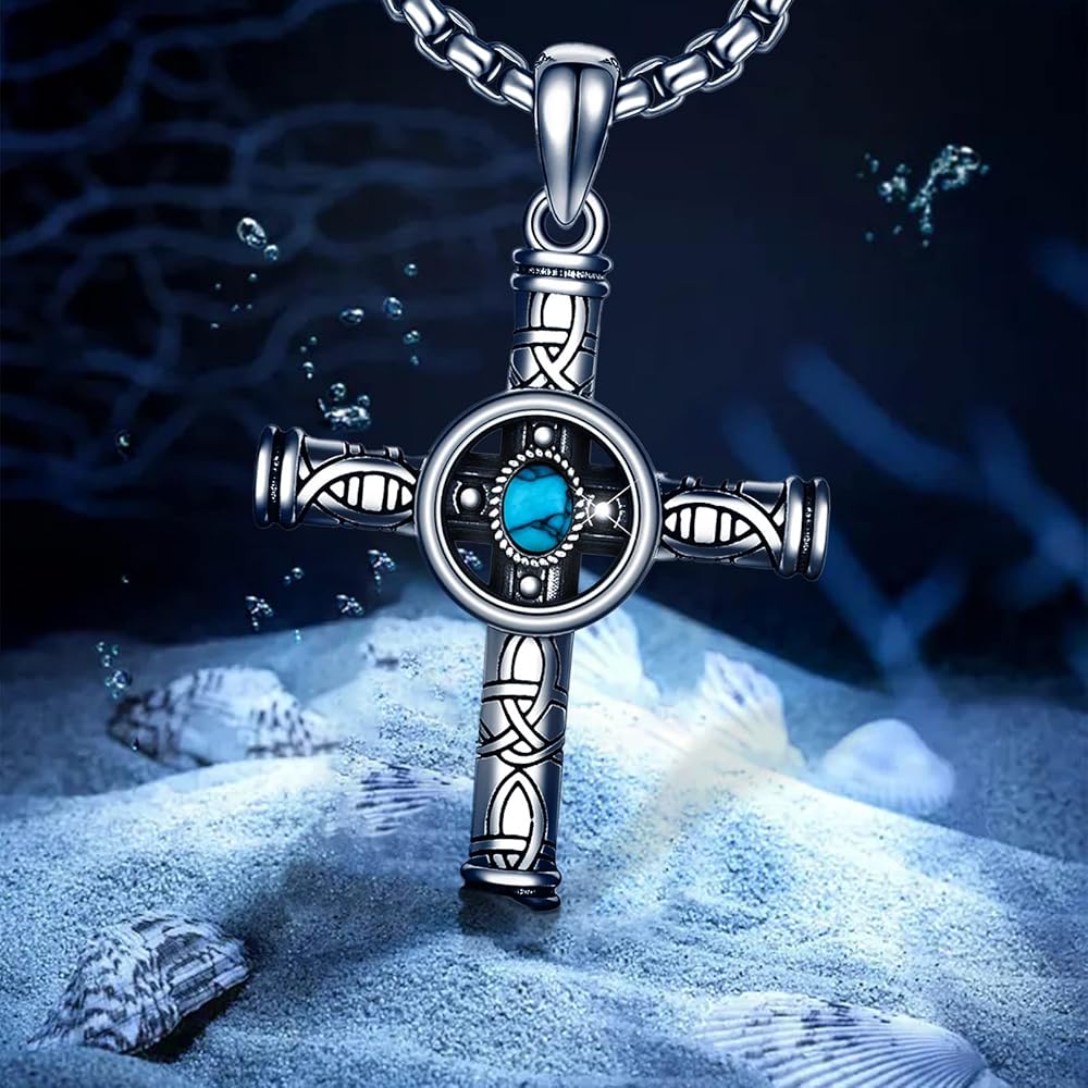 🤍DESGIN🤍 هذه القلادة المتقاطعة ذات اللون الفيروزي ستجعلك مفعمًا بالسحر وتعبر عن إيمانك جيدًا. يضيف الحماية والمظهر الفريد لخزانة ملابسك.