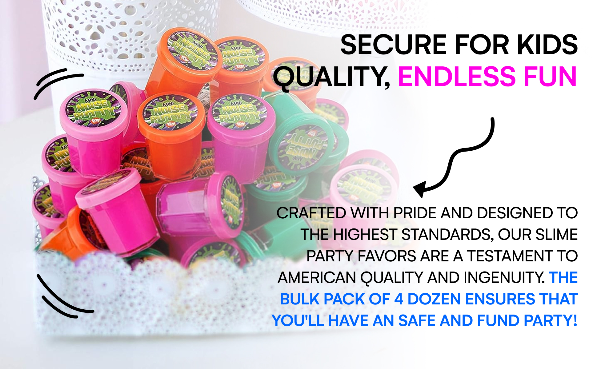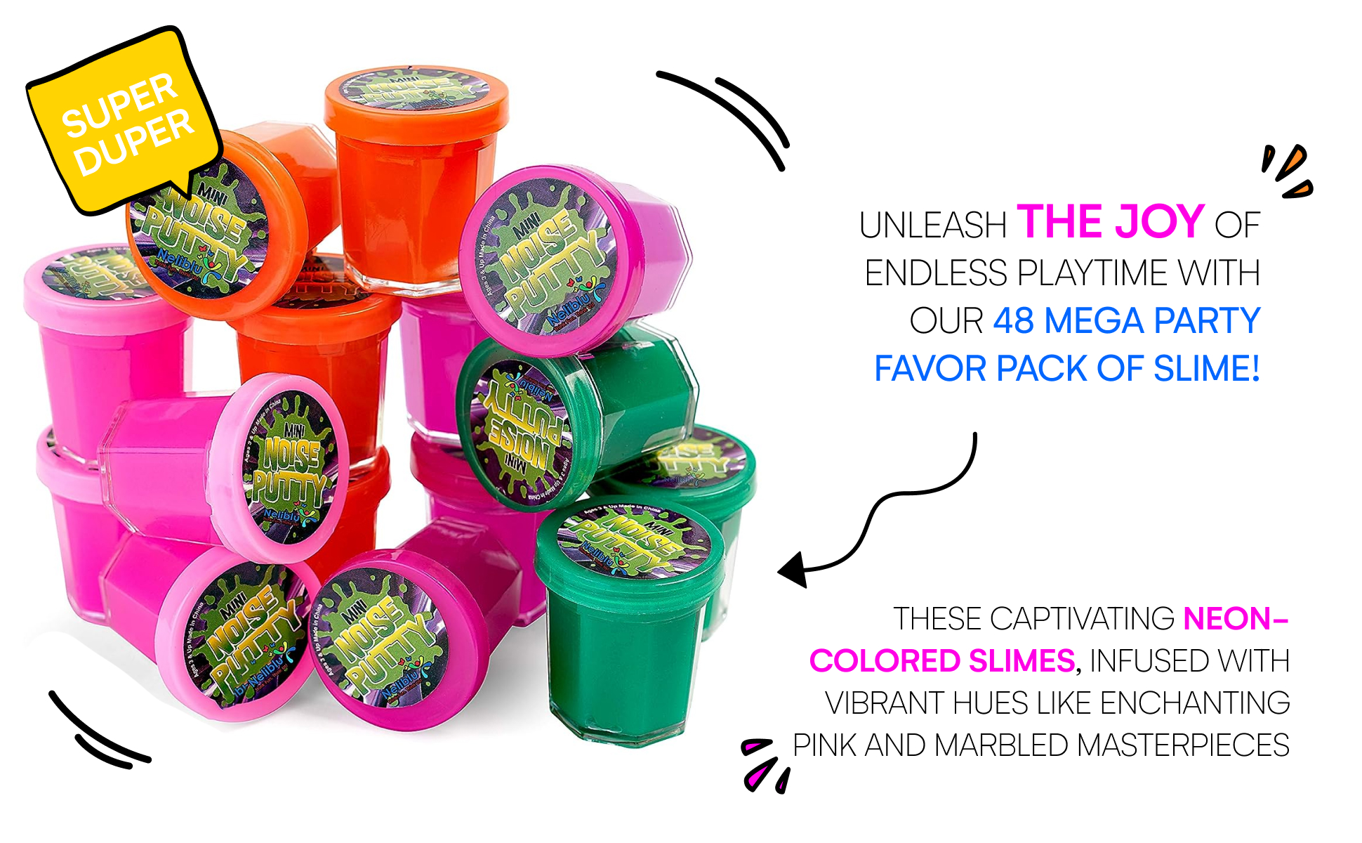 Slime Party Spectacular: أشعل متعة لا حدود لها مع مجموعة هدايا الحفلات التي يبلغ عددها 48 ميجا. استمتع بجاذبية السلايم الملون بالنيون، بما في ذلك الألوان الوردية الجذابة والعجائب الرخامية الساحرة.